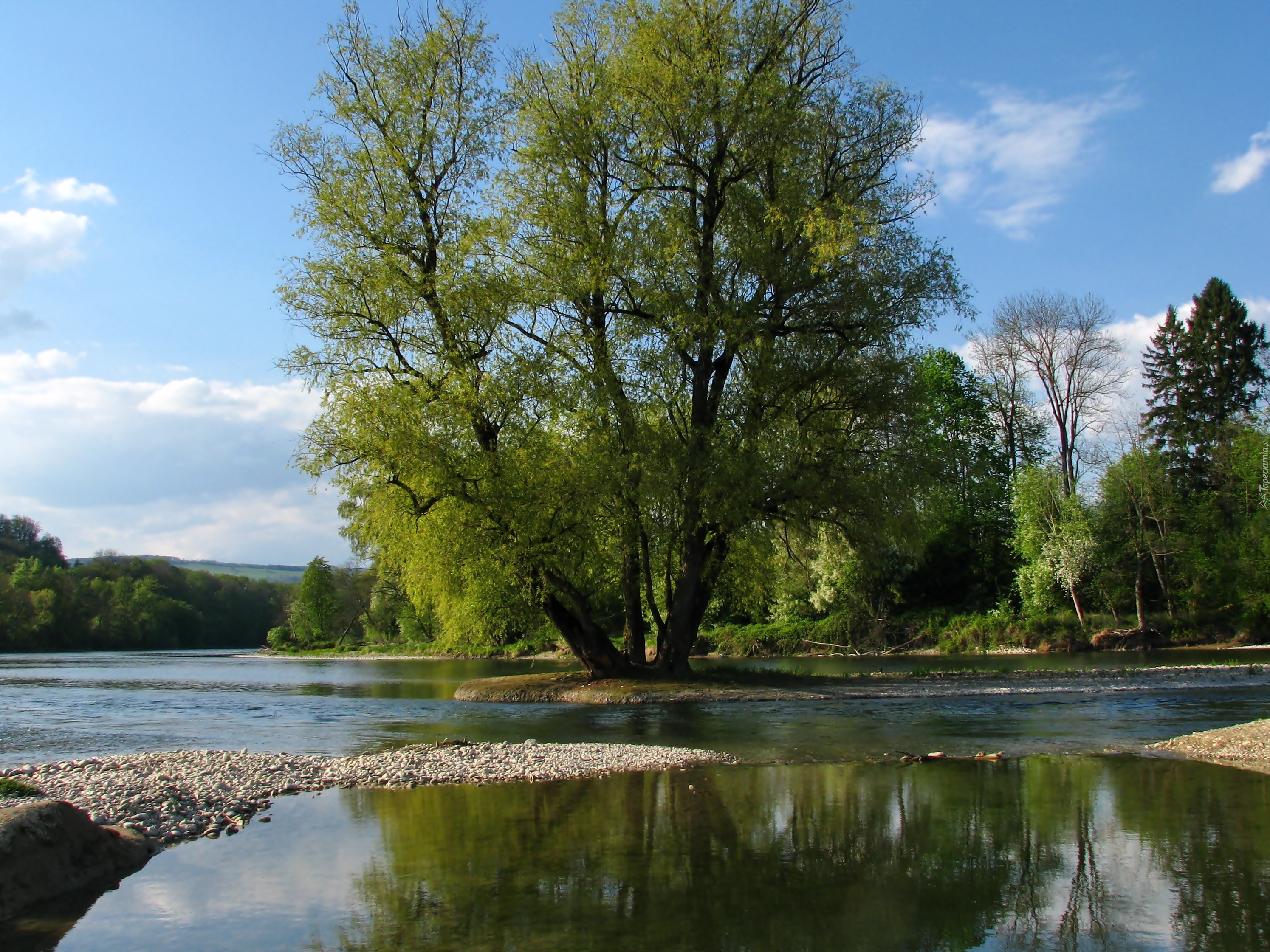 Edytor tapety: Rzeka, Aare, Szwajcaria, Drzewa