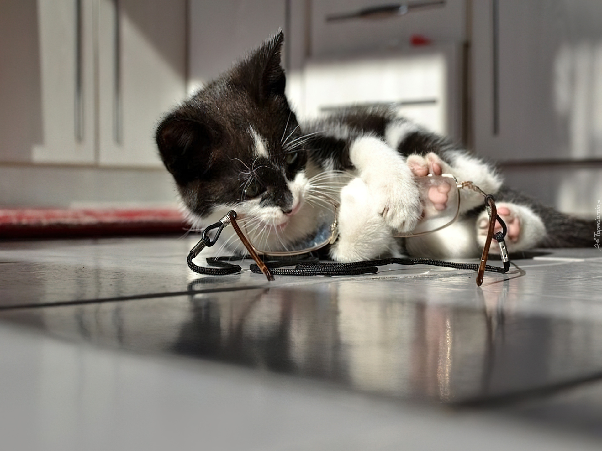 Edytor tapety: Kotek, Okulary, Zabawa