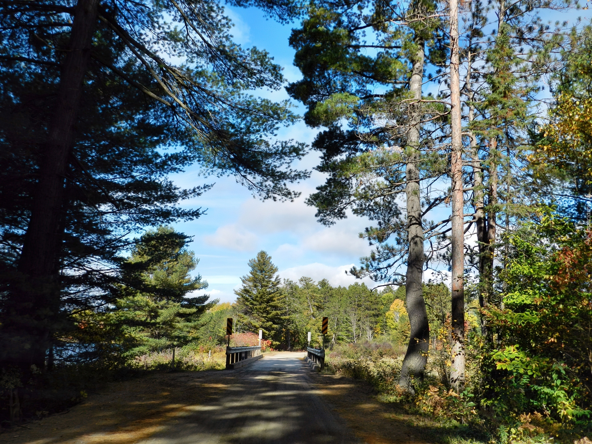 Edytor tapety: Droga, Las, Mostek