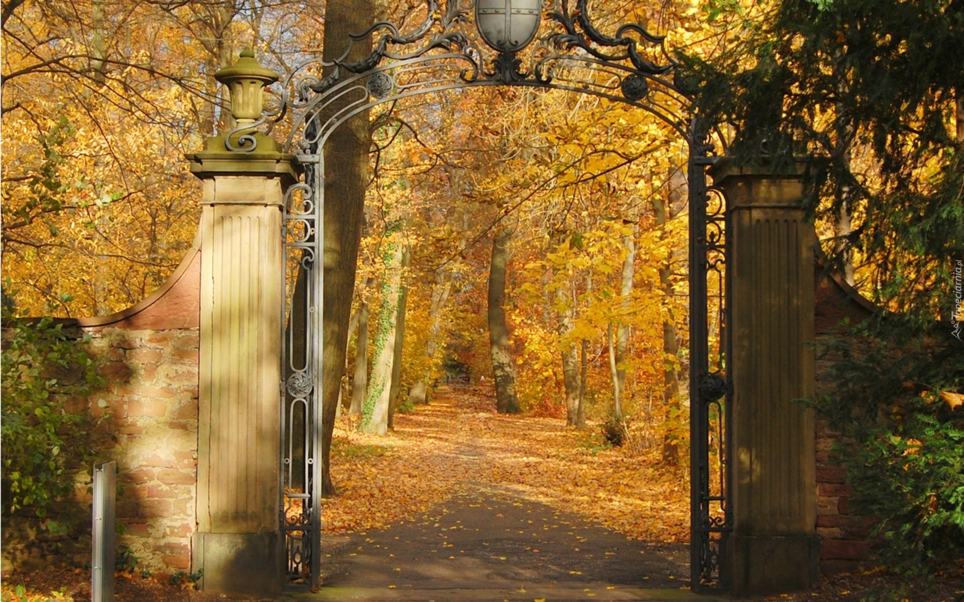 Edytor tapety: Park, Drzewa, Liście, Brama, Jesień