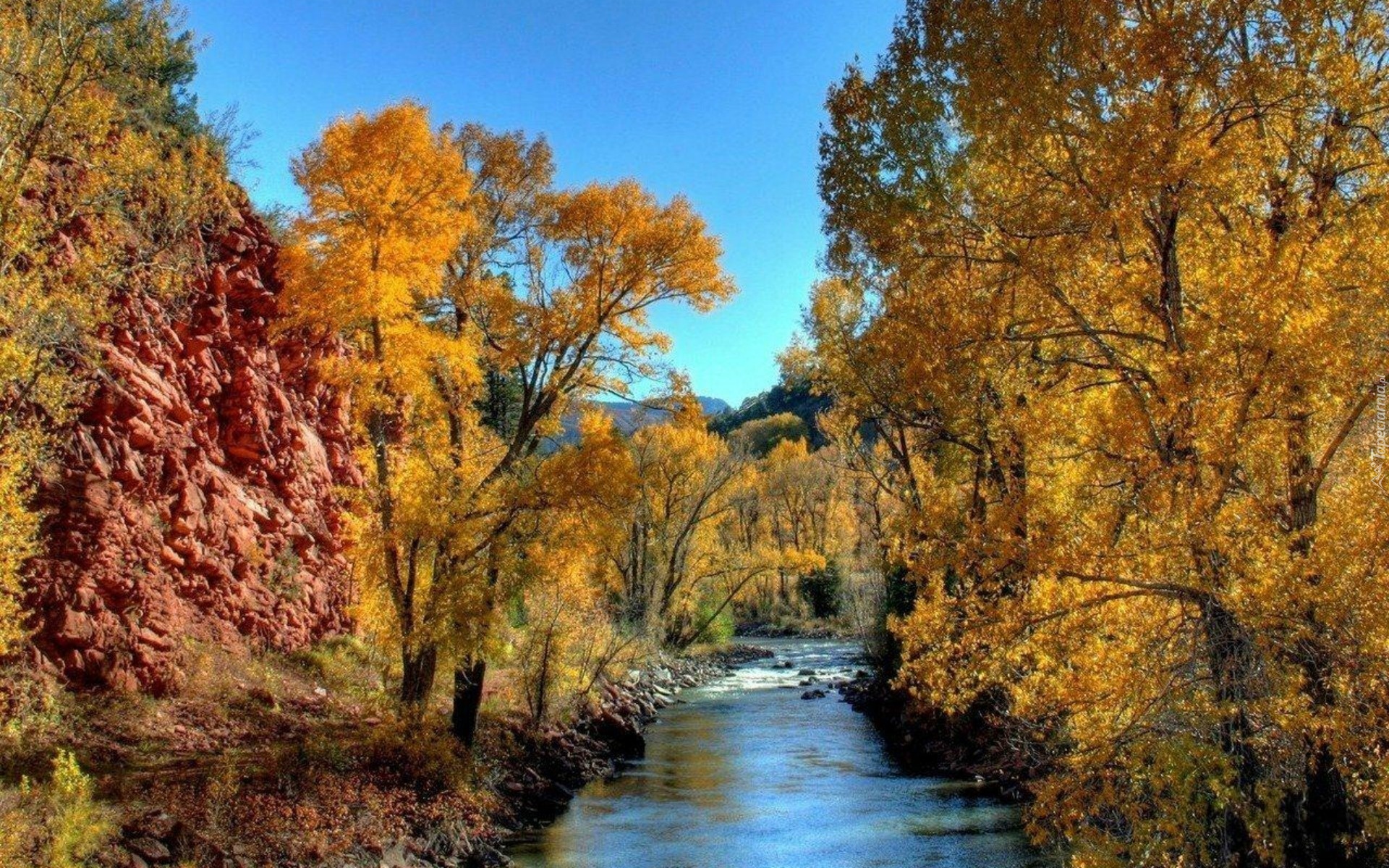 Edytor tapety: Rzeka, Drzewa, Jesień