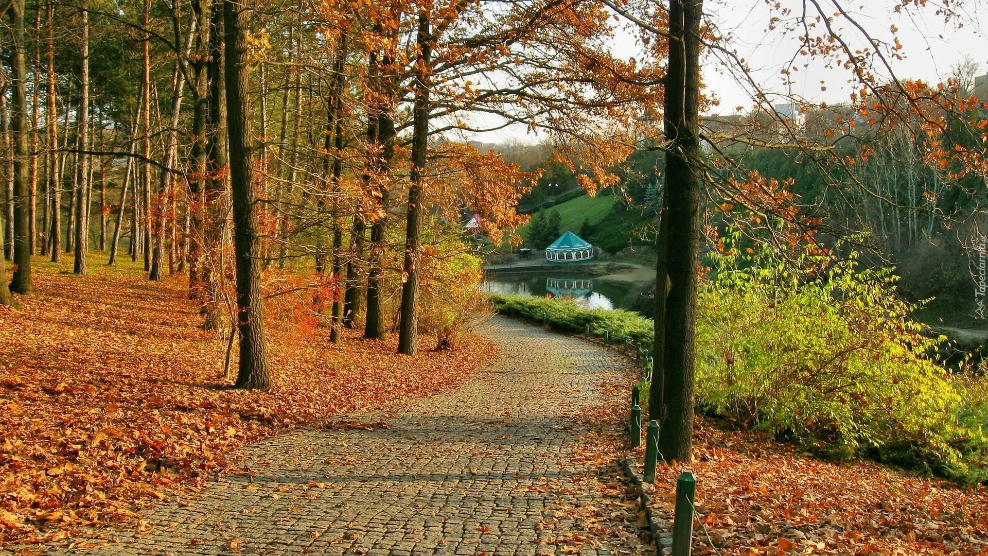 Edytor tapety: Park, Jesień, Drzewa, Liście, Droga