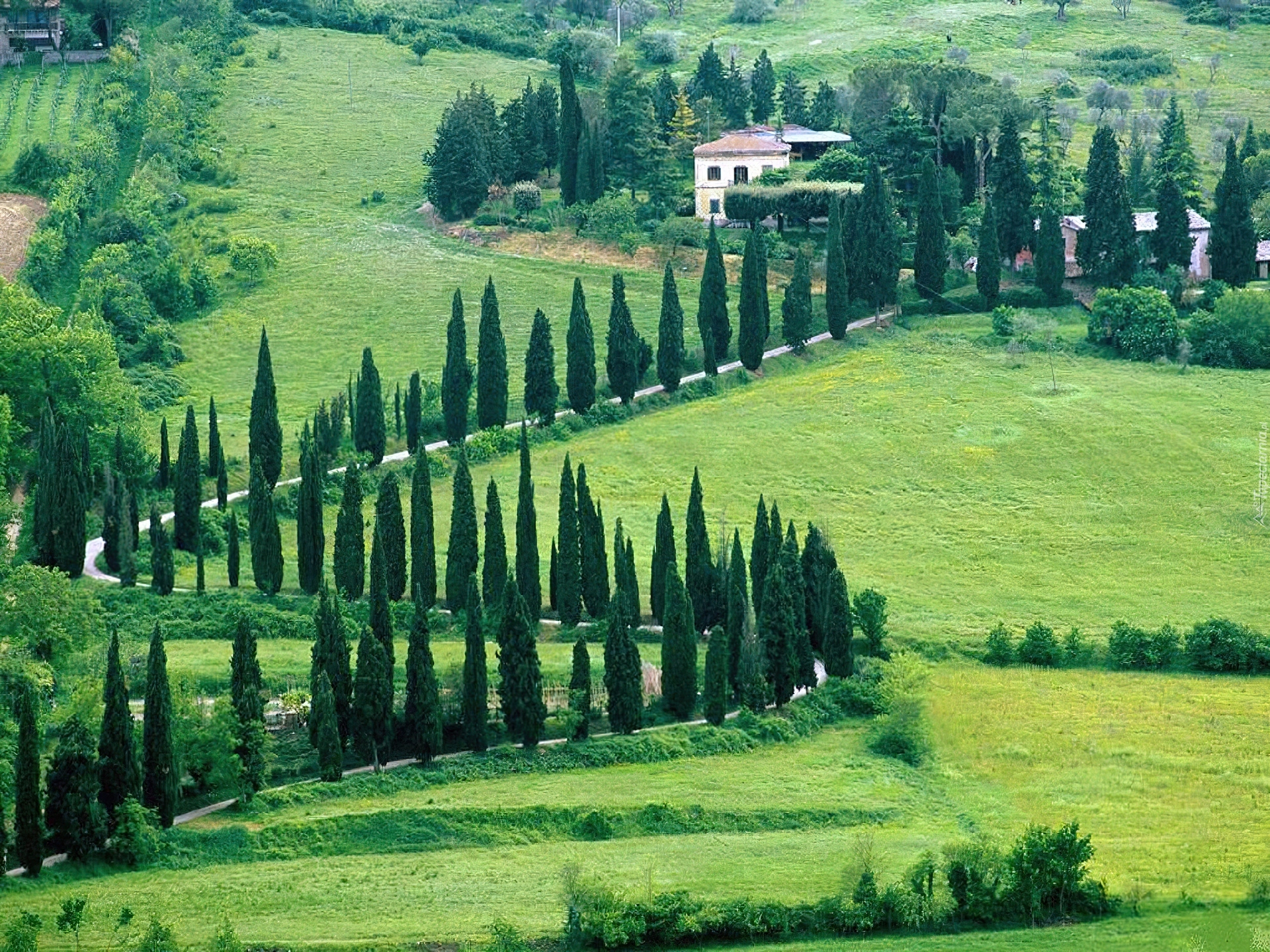 Edytor tapety: Droga, Topole, Krajobraz