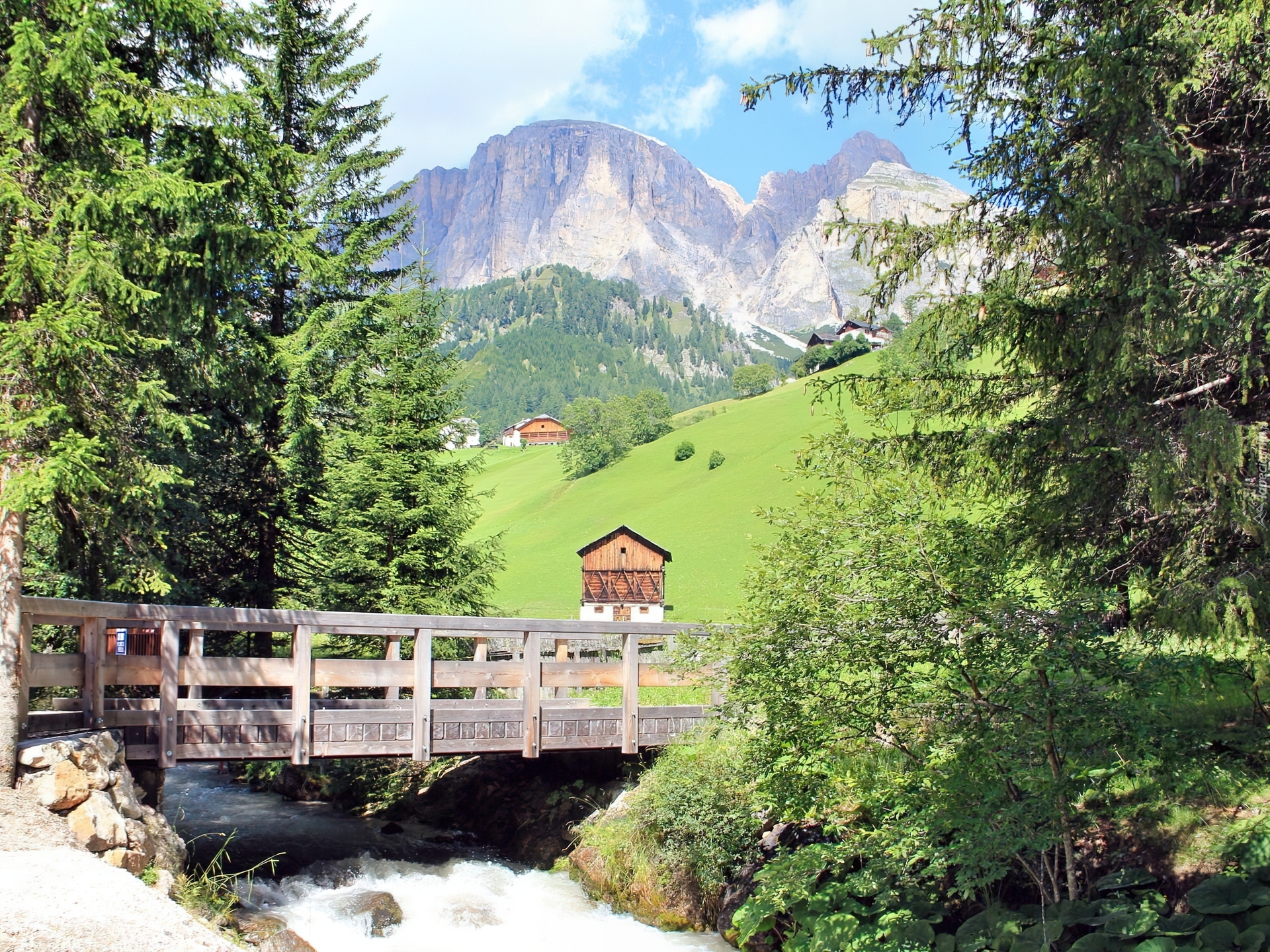 Edytor tapety: Góry, Łąka, Potok, Mostek