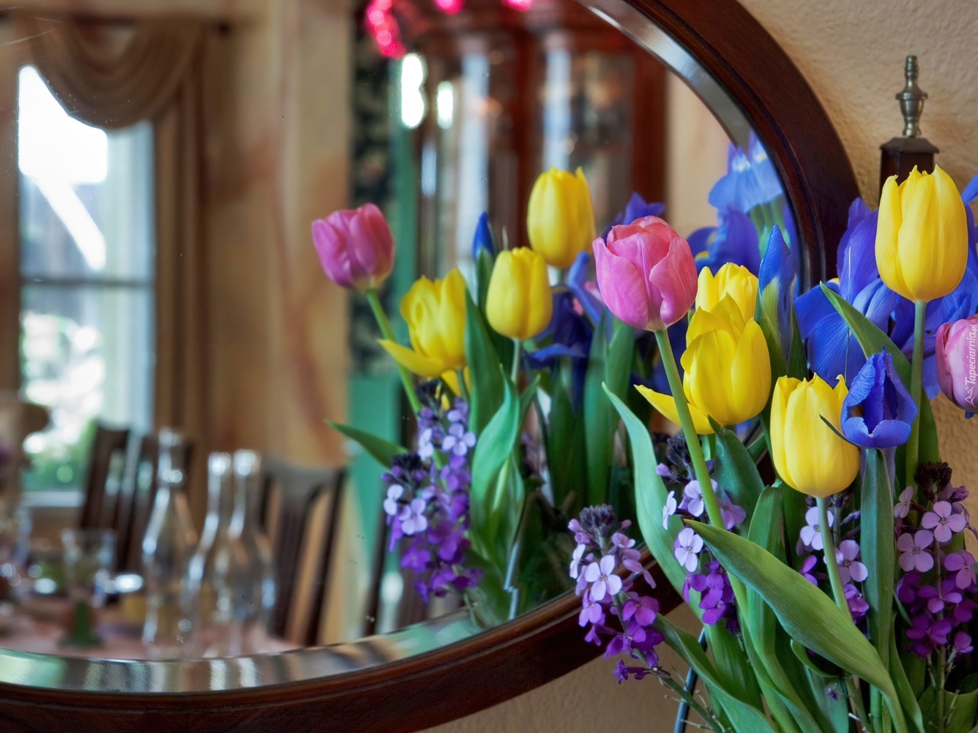 Edytor tapety: Tulipany, Lustro, Odbicie