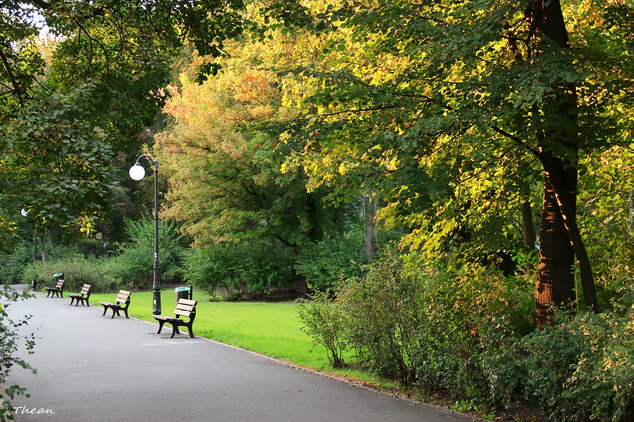 Edytor tapety: Park, Drzewa, Alejka, Ławki