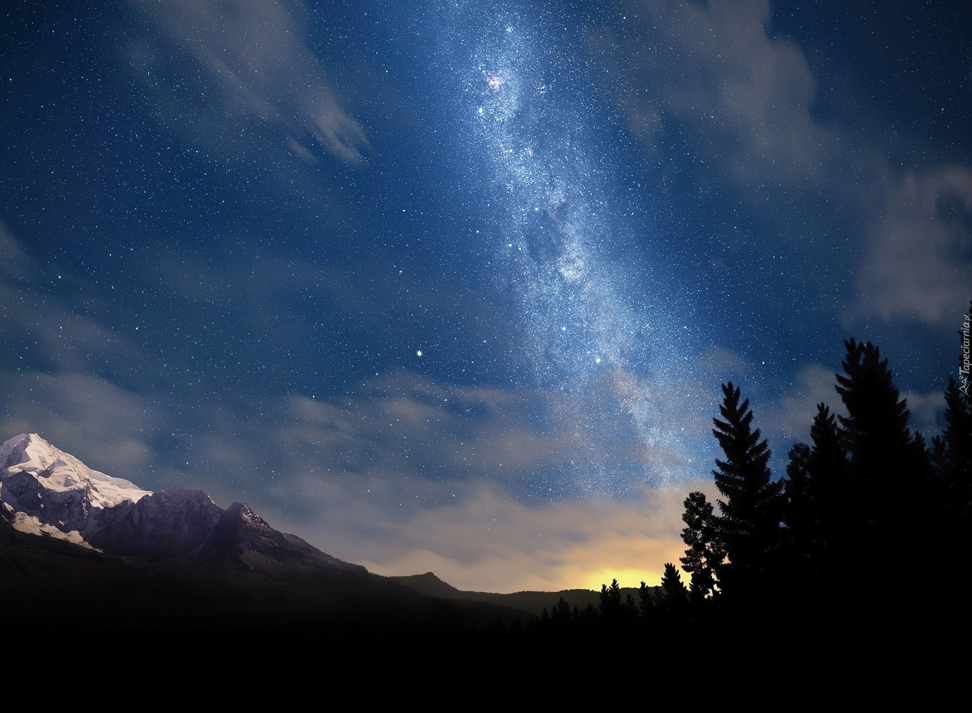 Edytor tapety: Góry, Drzewa, Noc, Gwiaździste, Niebo