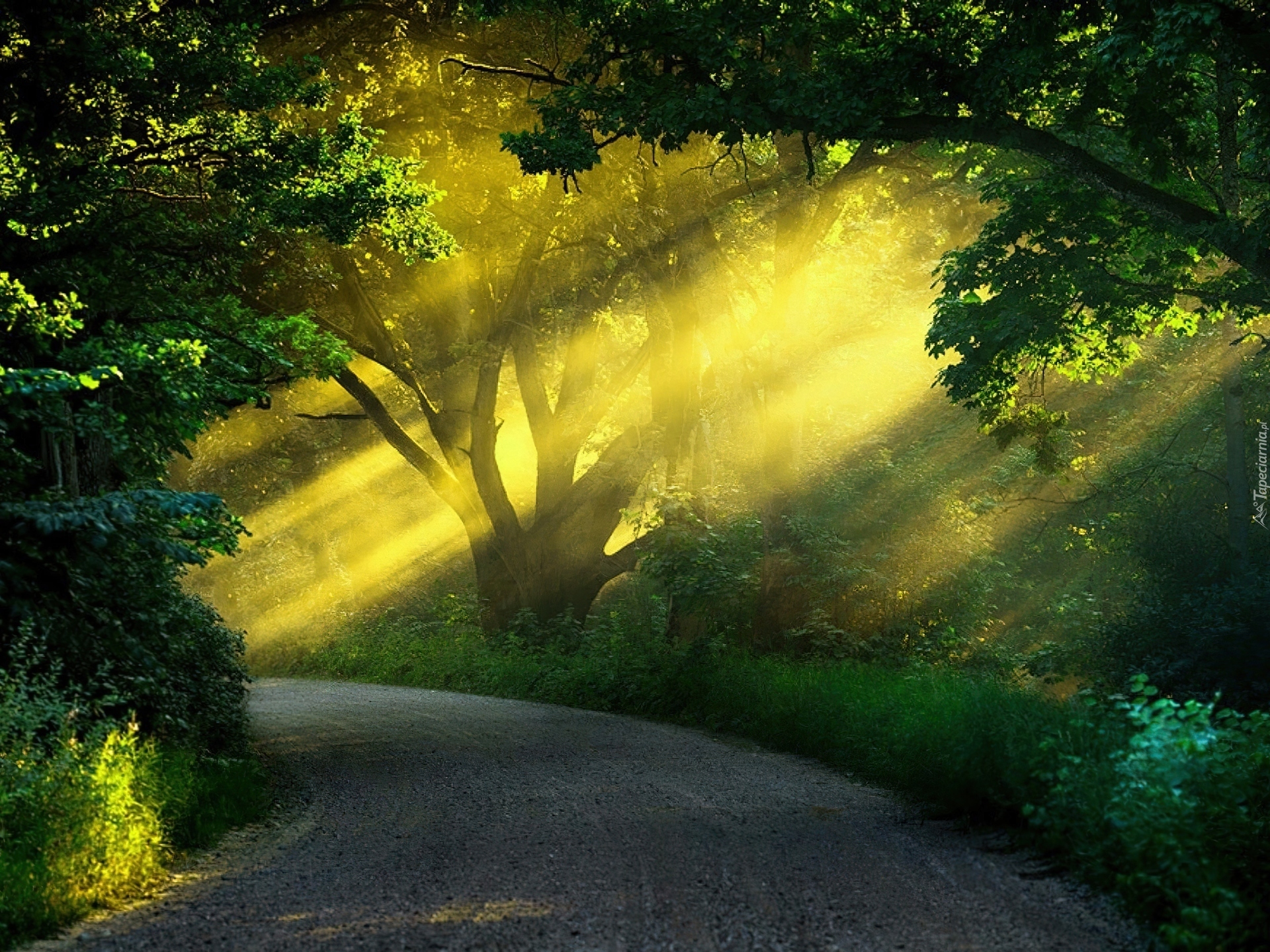 Edytor tapety: Droga, Las, Promienie Słońca