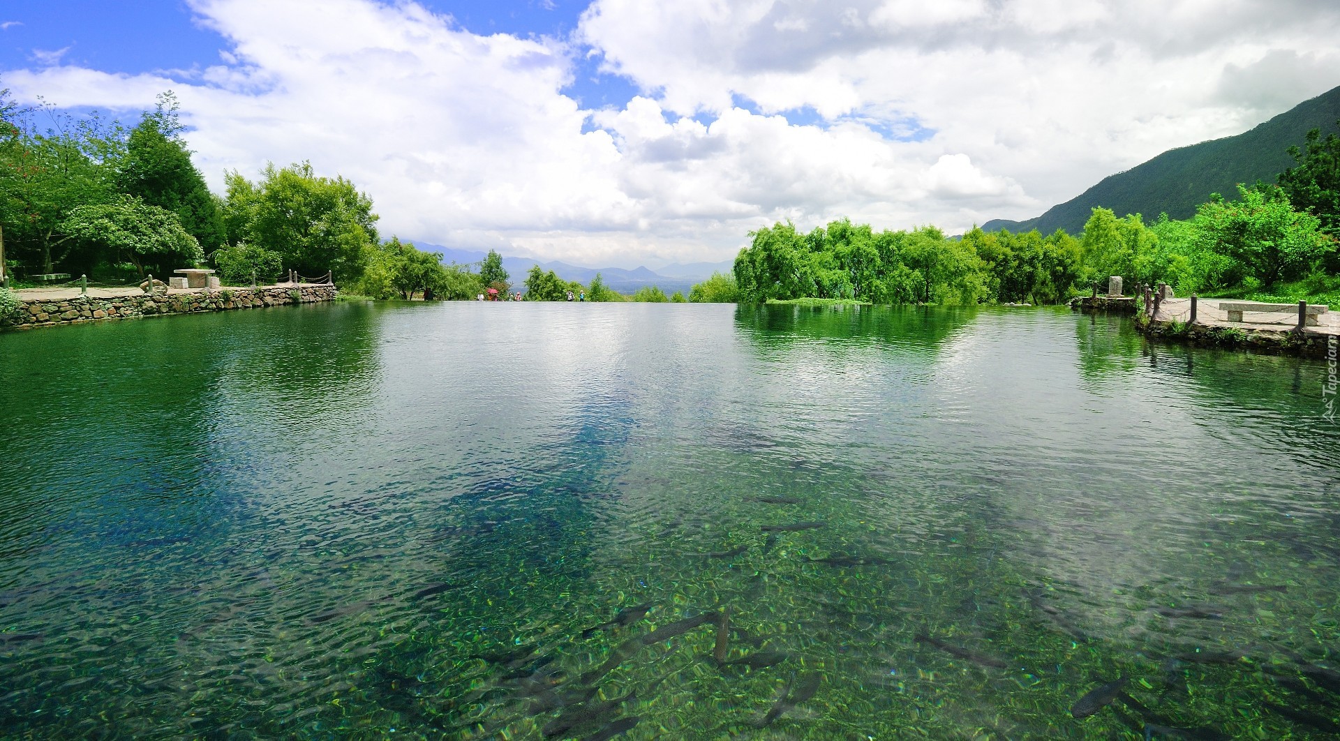 Edytor tapety: Piękne, Jezioro, Drzewa, Chmury