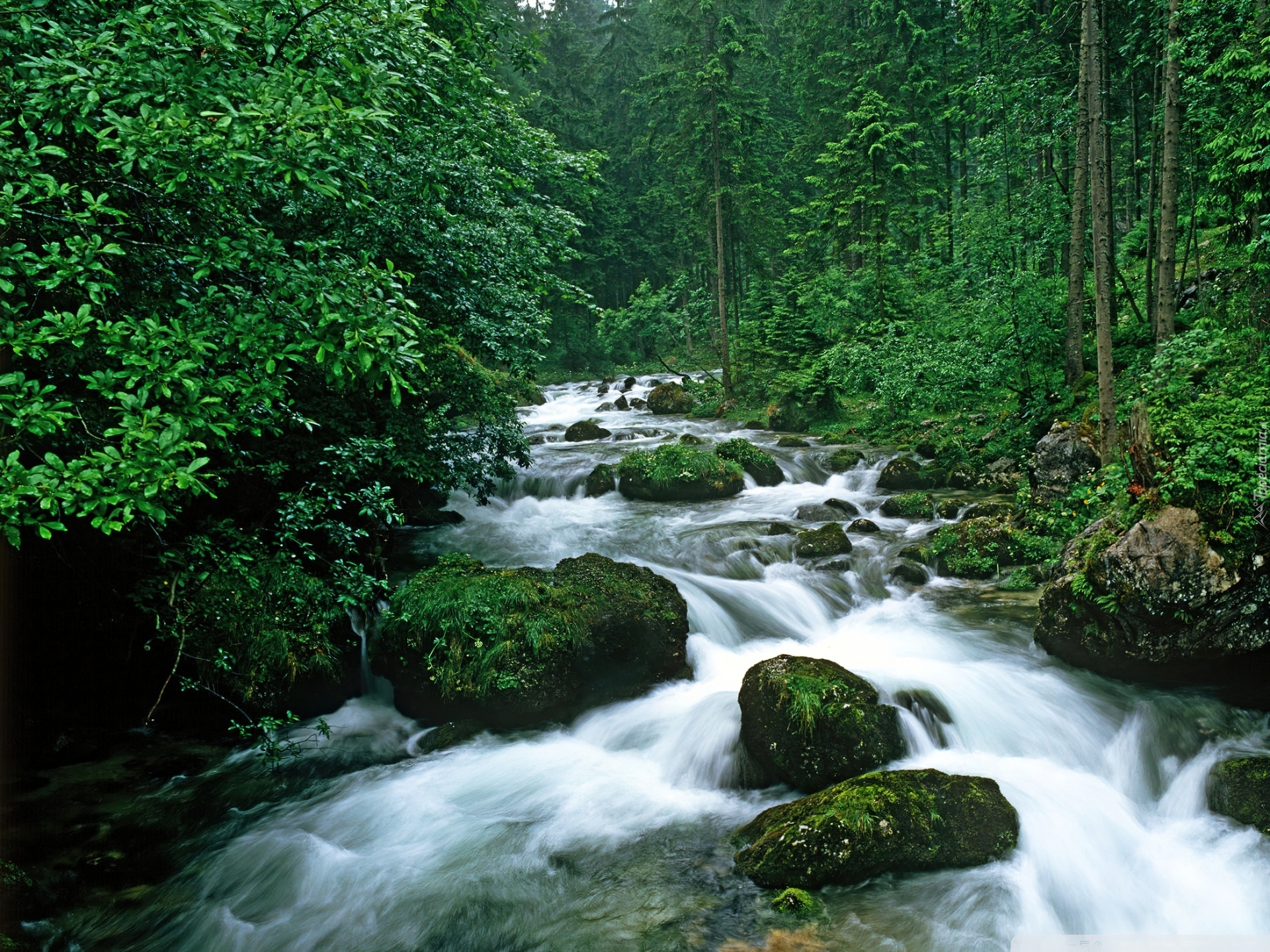 Edytor tapety: Las, Rzeka, Kamienie