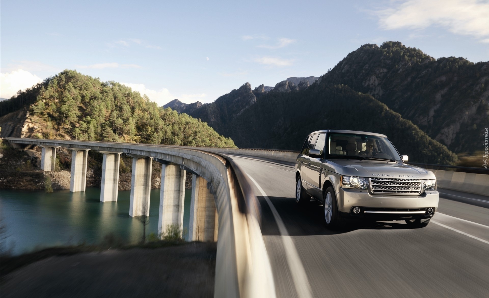 Edytor tapety: Droga, Rzeka, Most, Góry, Range Rover