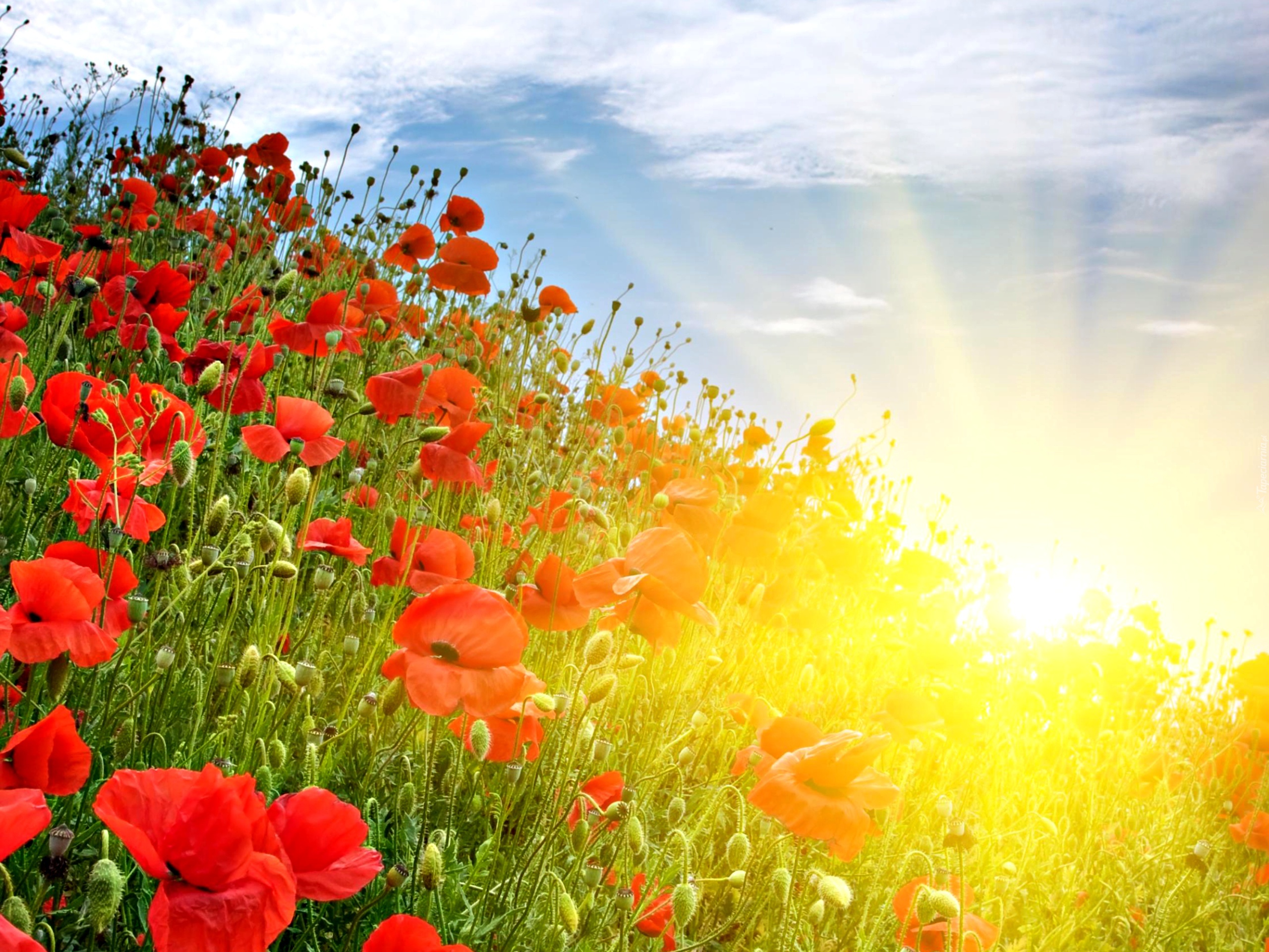 Edytor tapety: Promienie, Słońca, Maki