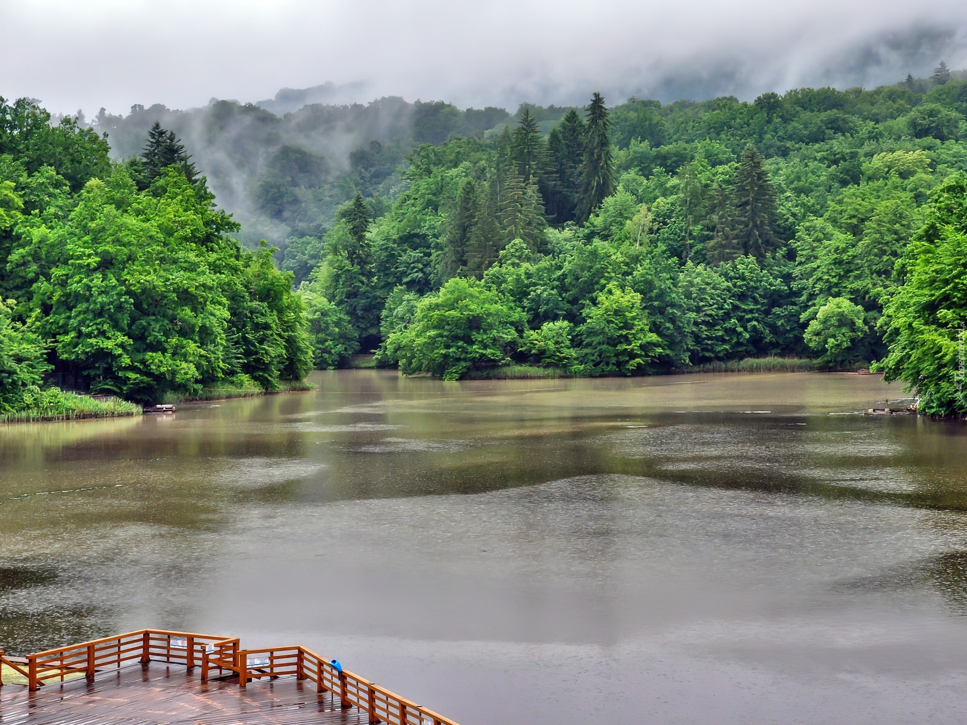 Edytor tapety: Las, Mgła, Rzeka, Pomost