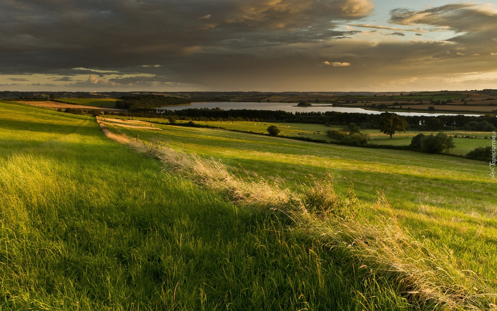 Edytor tapety: Łąki, Jezioro, Chmury