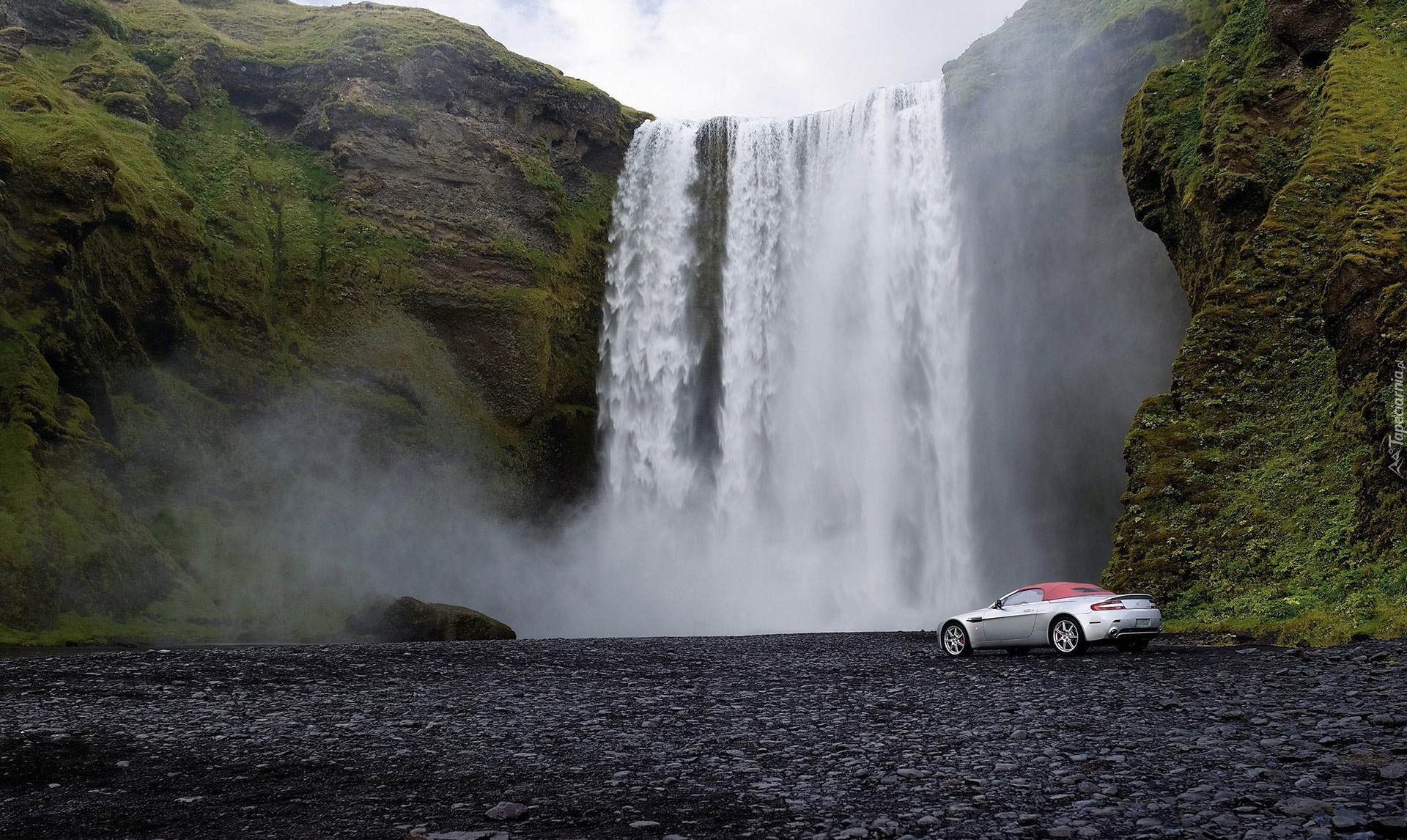 Edytor tapety: Wodospad, Samochód, Aston Martin