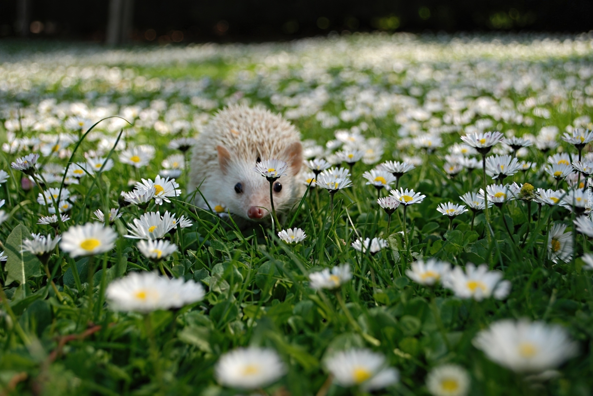 Edytor tapety: Biały, Jeżyk, Łąka, Kwiatki