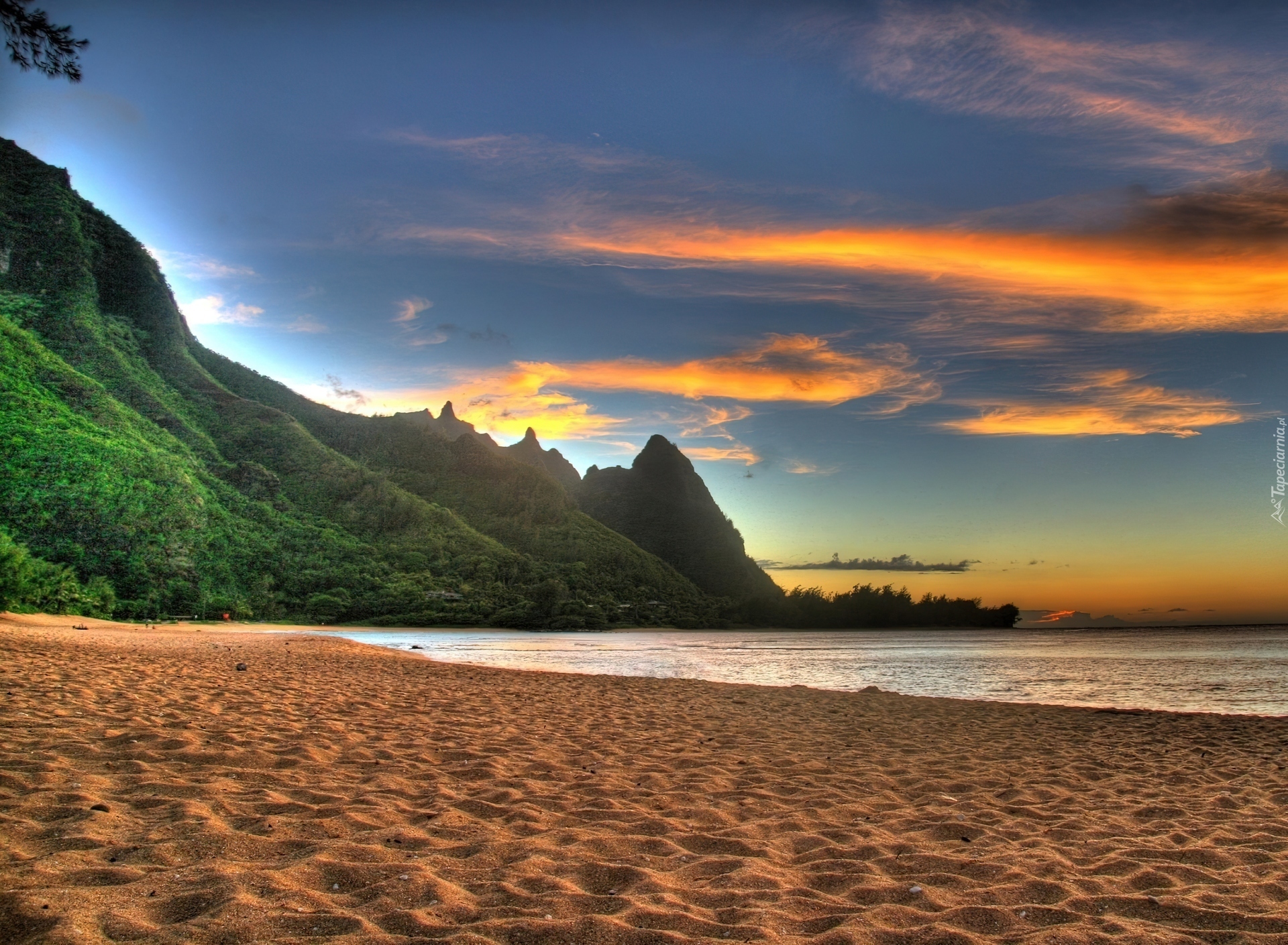 Edytor tapety: Morze, Plaża, Góry, Zachód Słońca