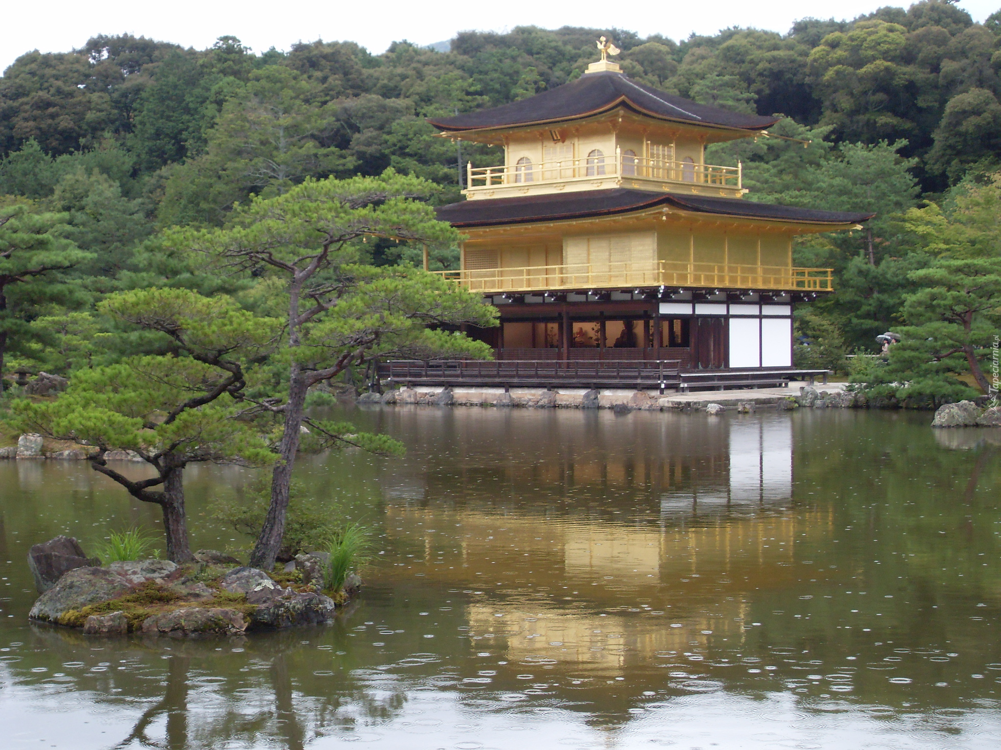 Edytor tapety: Świątynia Kinkakuji, Złoty Pawilon, Staw Kyko chi, Drzewa, Kioto, Japonia