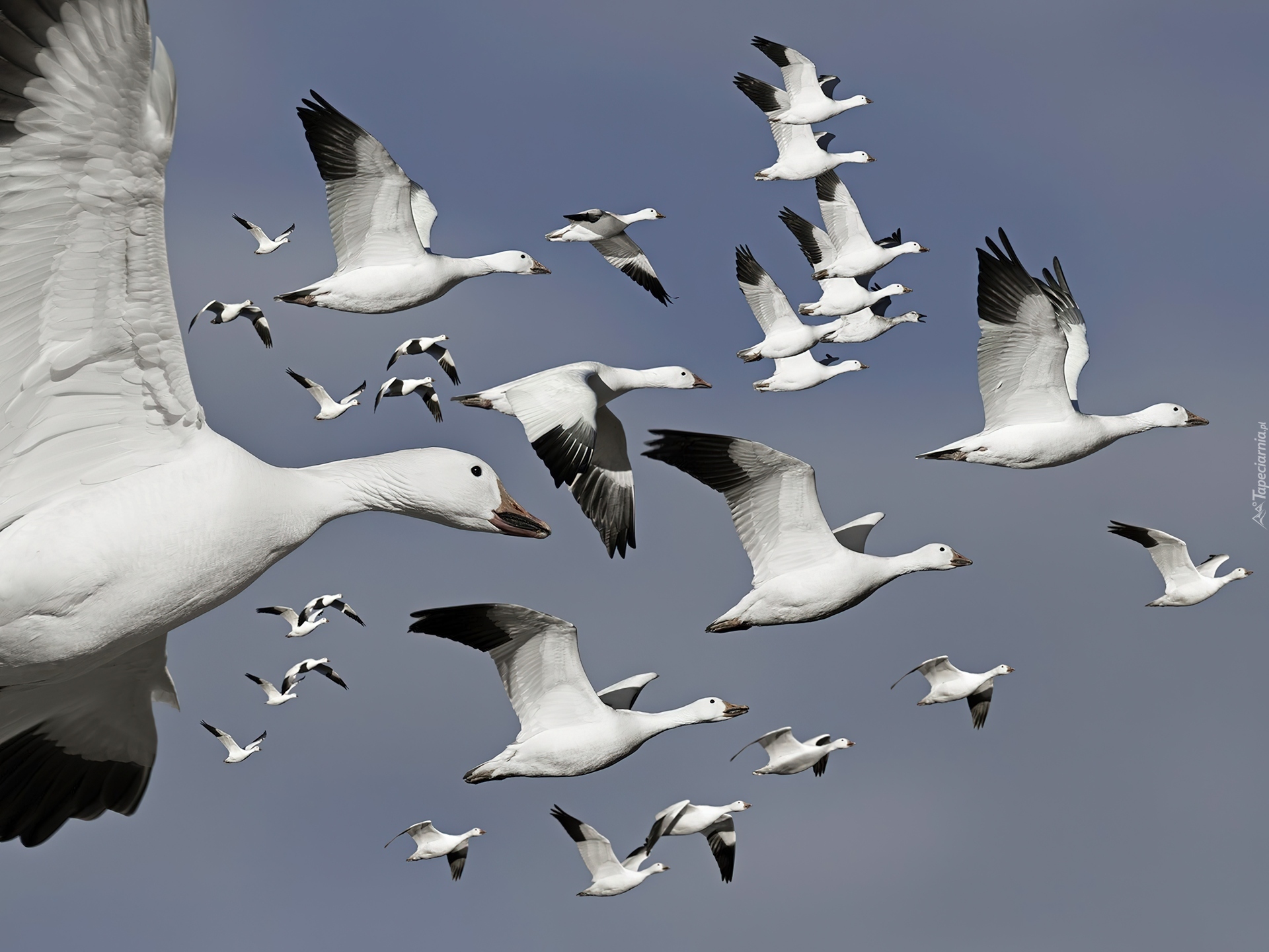 Edytor tapety: Stado, Gęsi, Lot