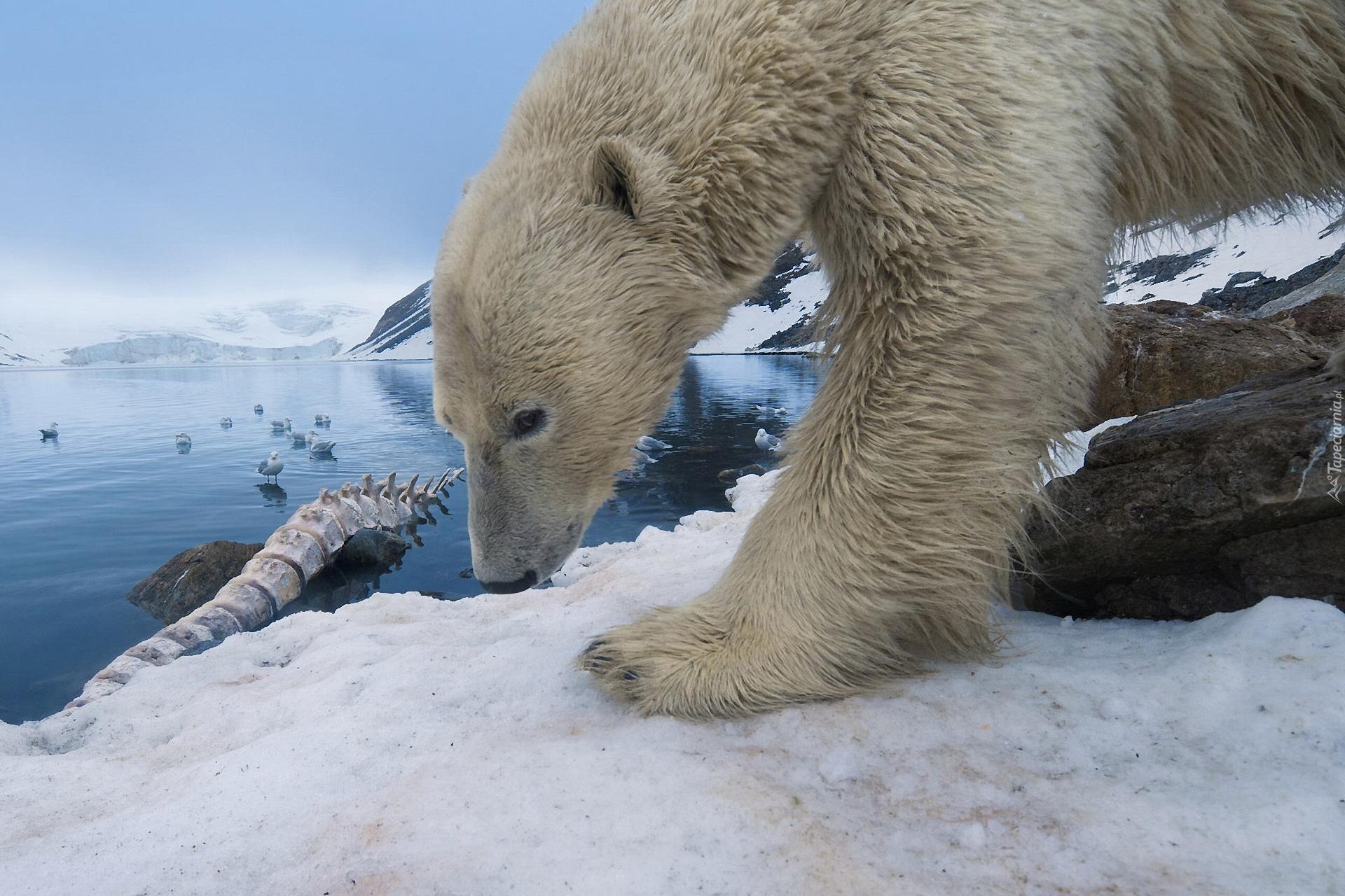 Edytor tapety: Niebo, Śnieg, Jezioro, Miś