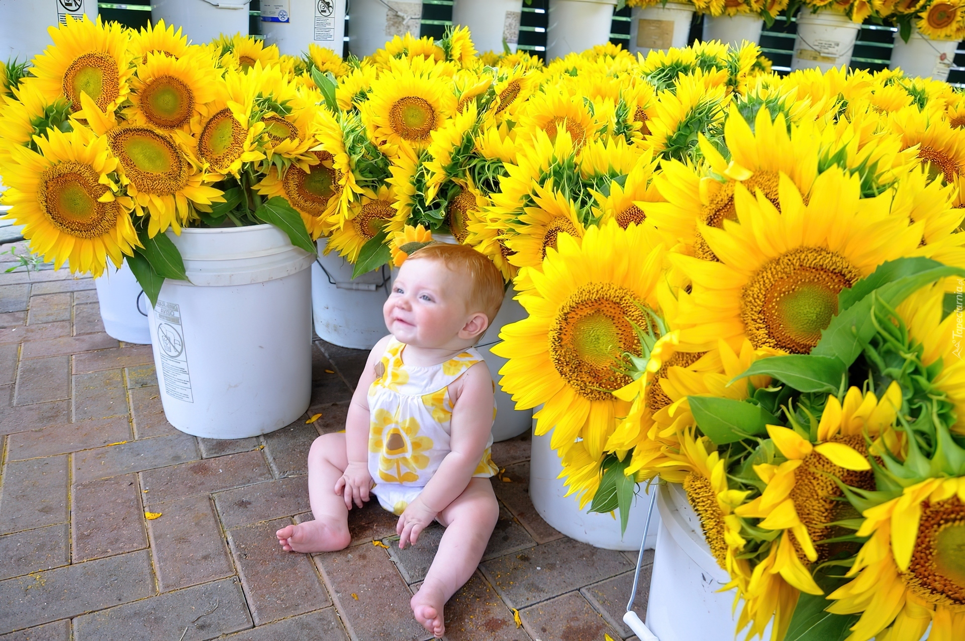 Edytor tapety: Słoneczniki, Dziecko