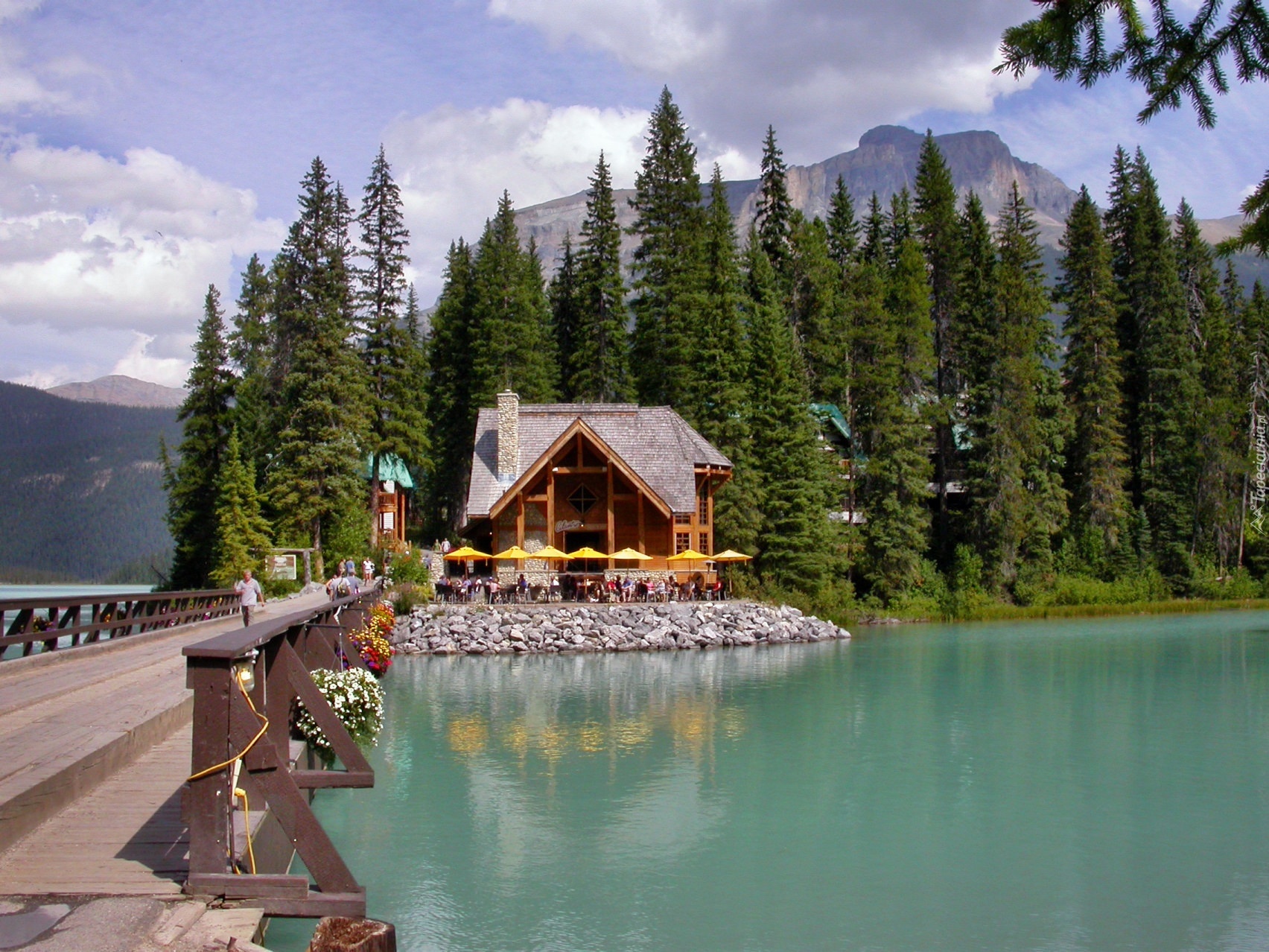 Edytor tapety: Drewniany, Most, Restauracja, Nad, Jeziorem