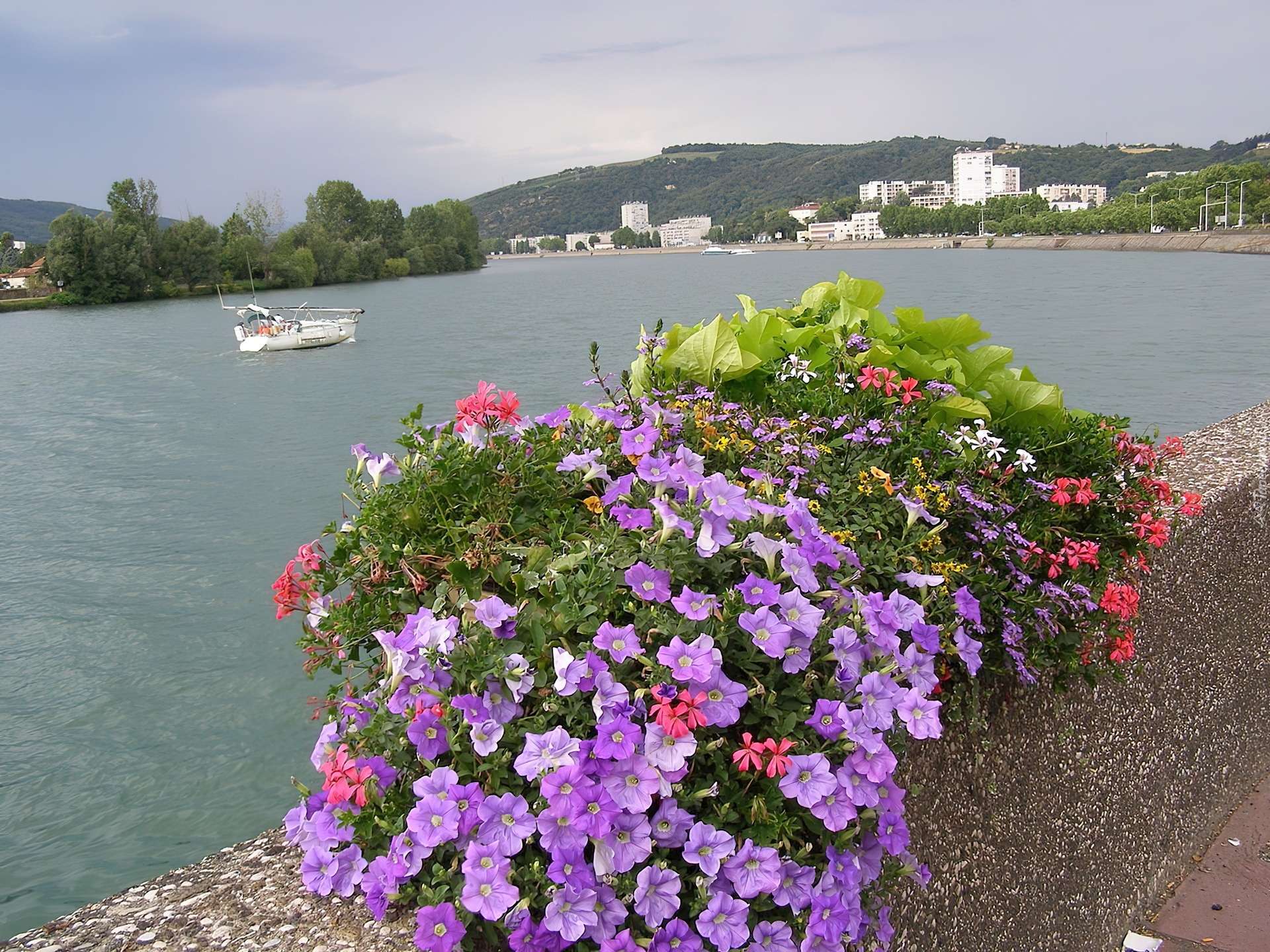 Edytor tapety: Rzeka, Vienne, Kwiaty, Panorama, Francja