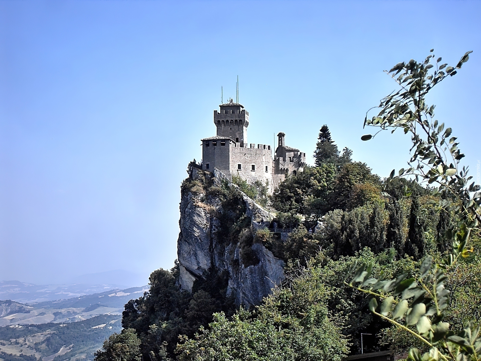 Edytor tapety: San Marino, Zamek, Ruiny, Skały, Akacje