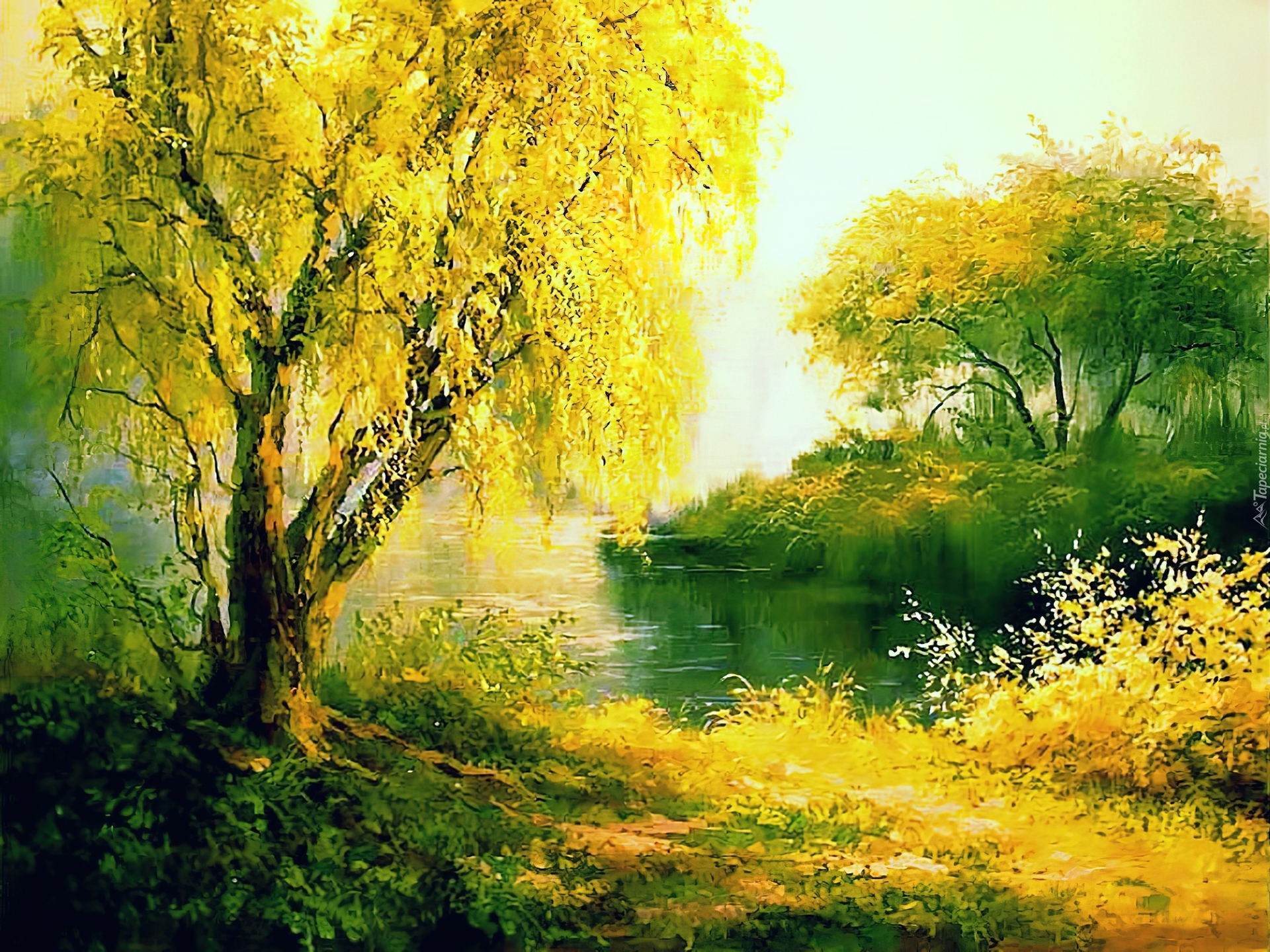 Edytor tapety: Drzewa, Staw, Jesień, Widoczek, Malarstwo