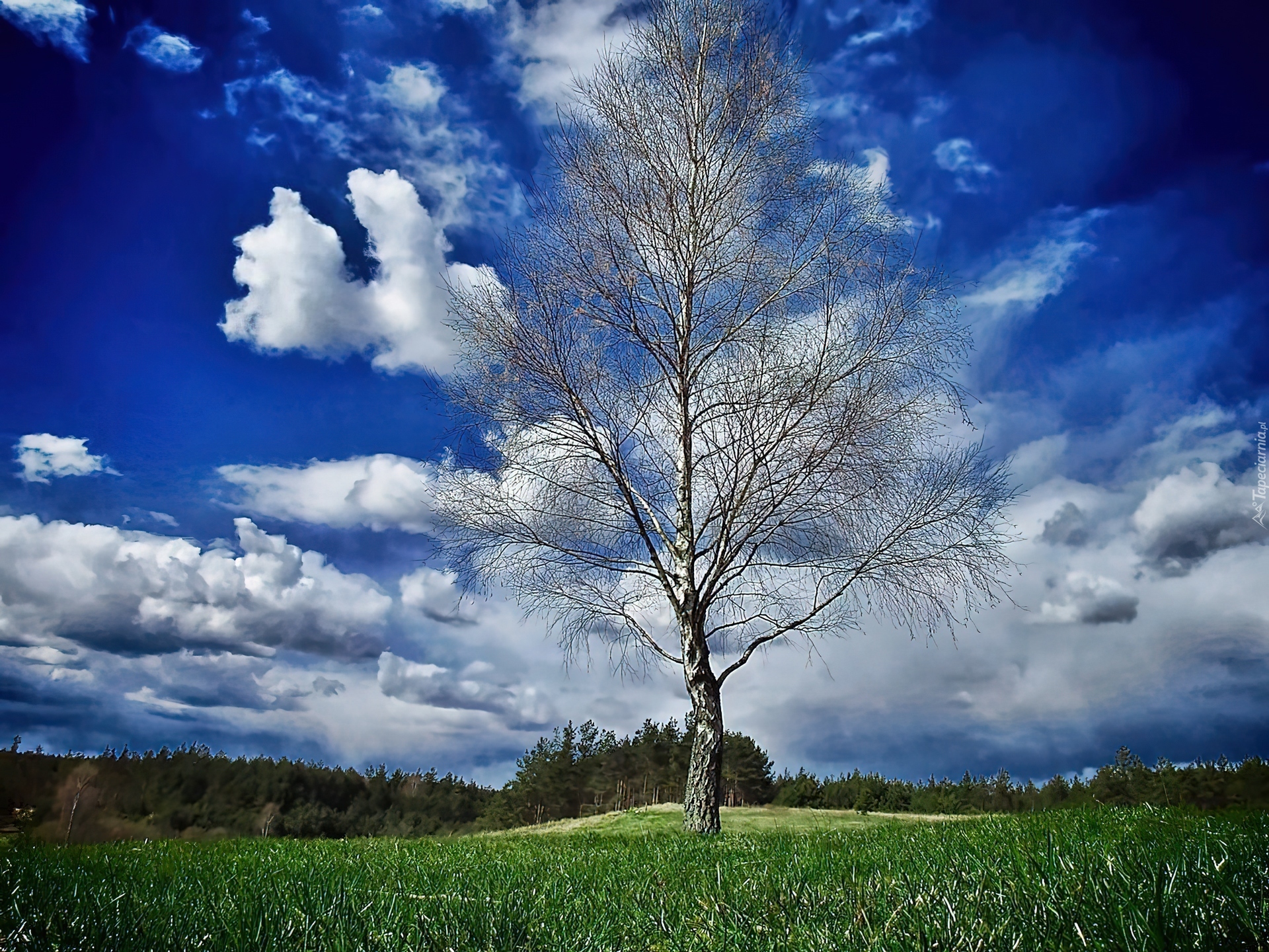 Edytor tapety: Brzoza, Trawa, Las, Chmury