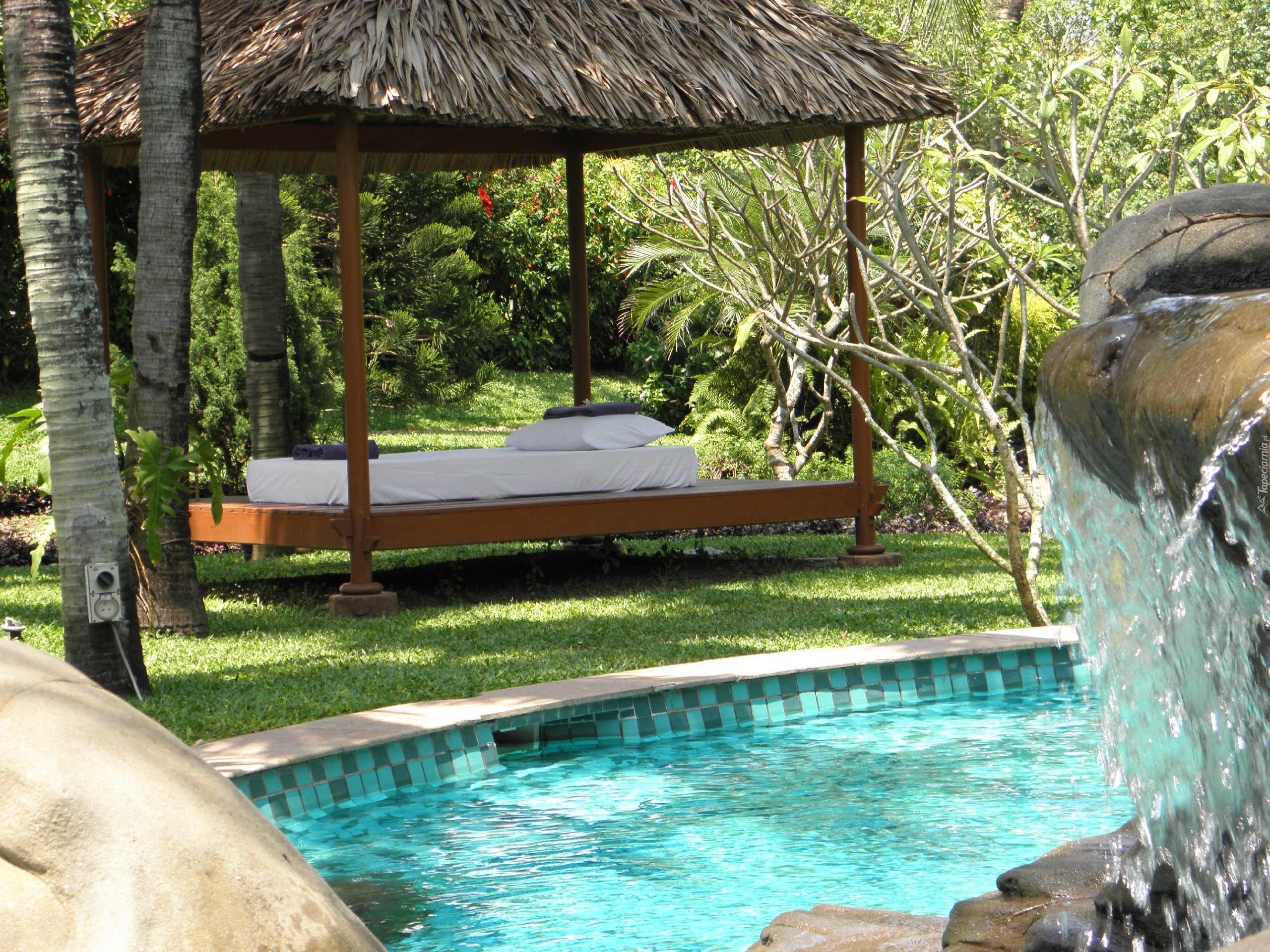 Edytor tapety: Ogród, Leżanka, Basen