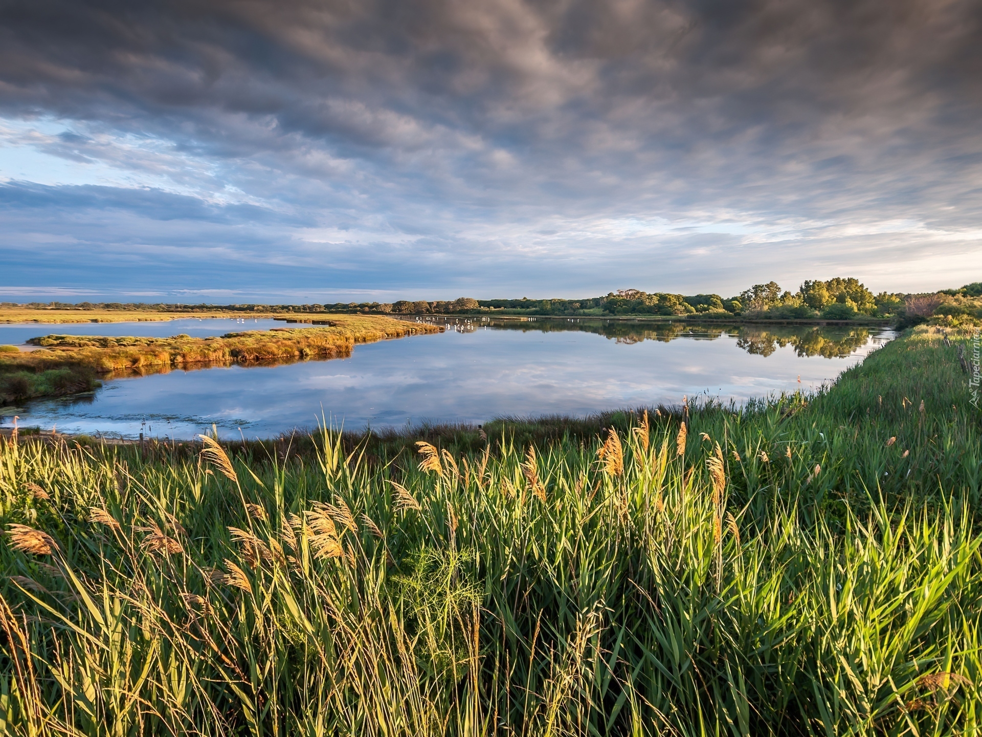 Edytor tapety: Rozległe, Jezioro, Szuwary, Niebo