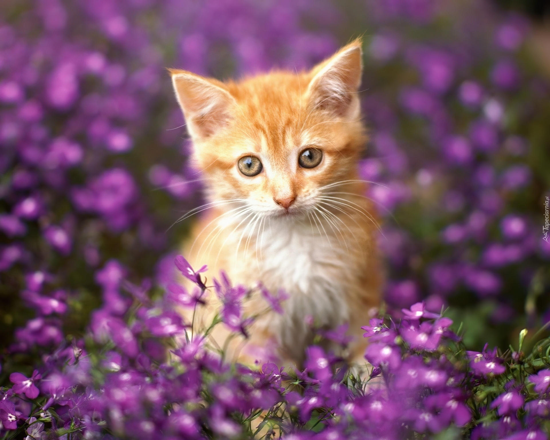 Edytor tapety: Mały, Rudy, Kotek, Kwiatki