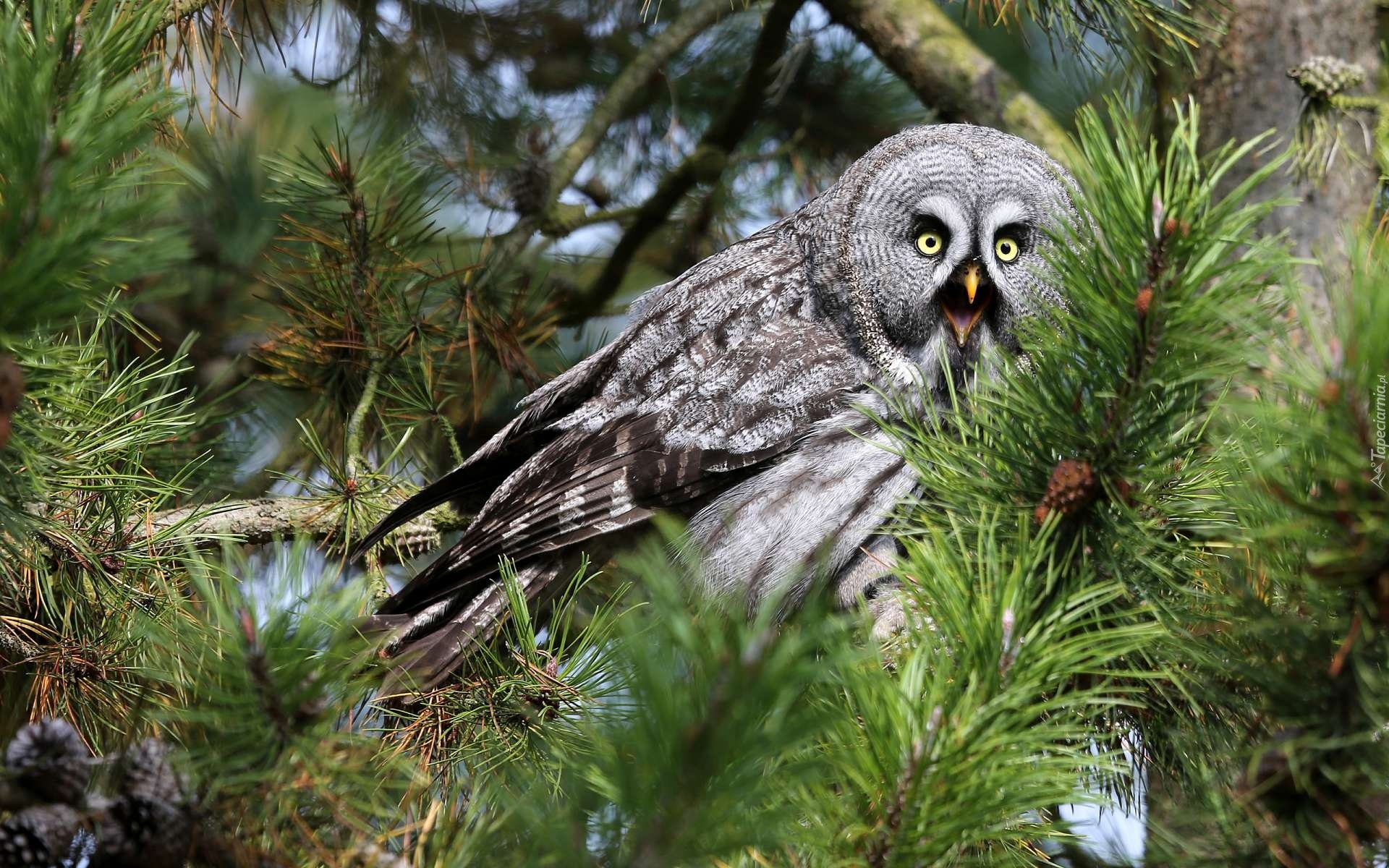 Edytor tapety: Sowa, Puszczyk mszarny, Gałązki