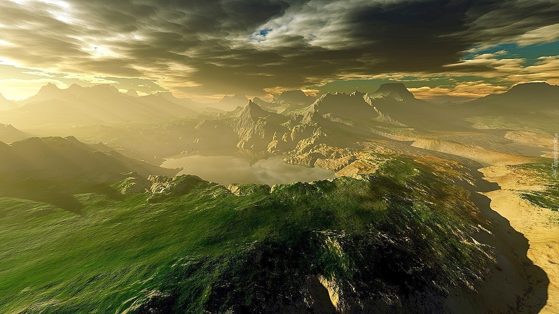 Edytor tapety: Góry, Skały, Jezioro, Chmury, Mgła