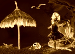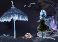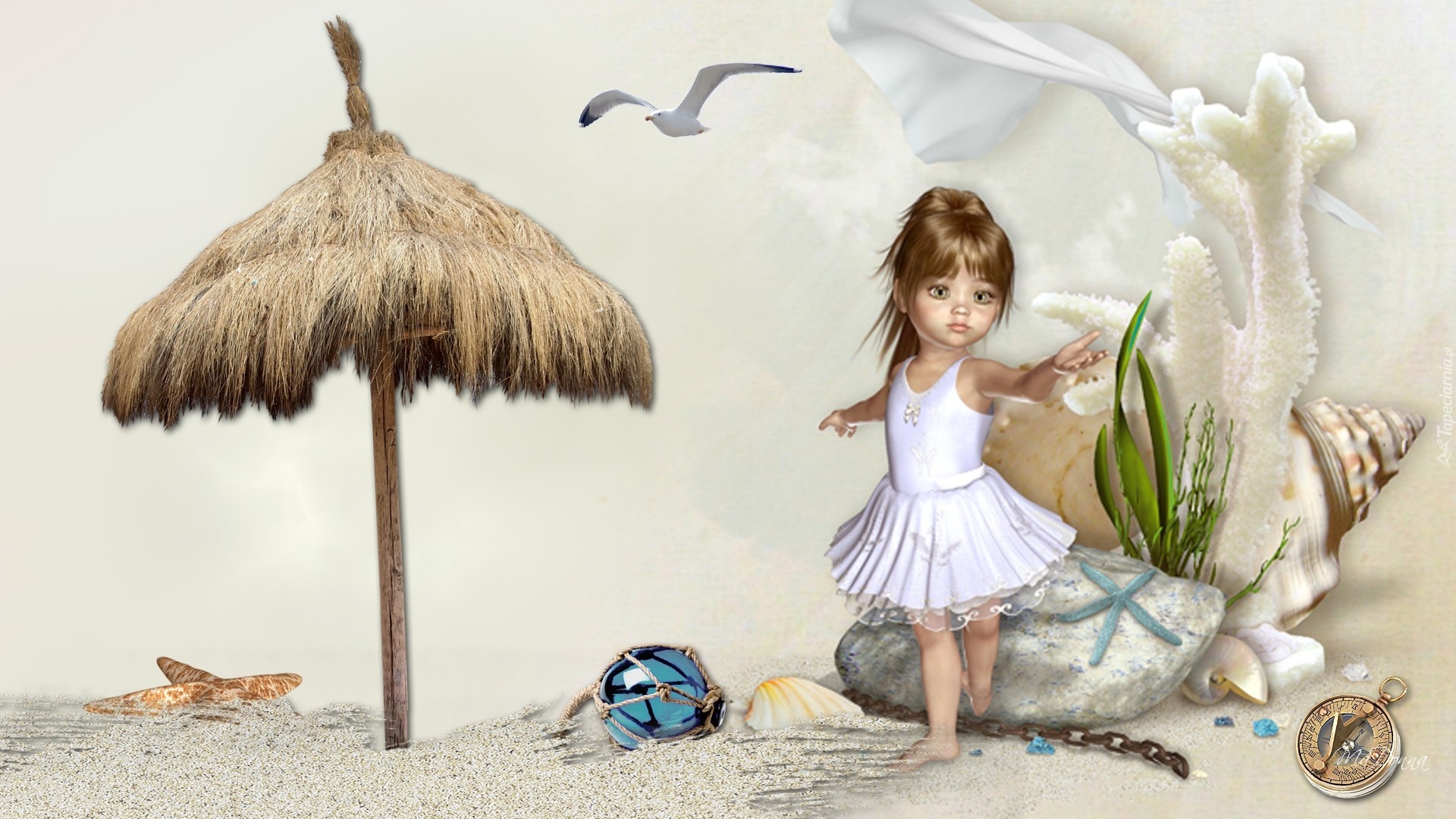 Edytor tapety: Dziewczynka, Plaża, Kamienie