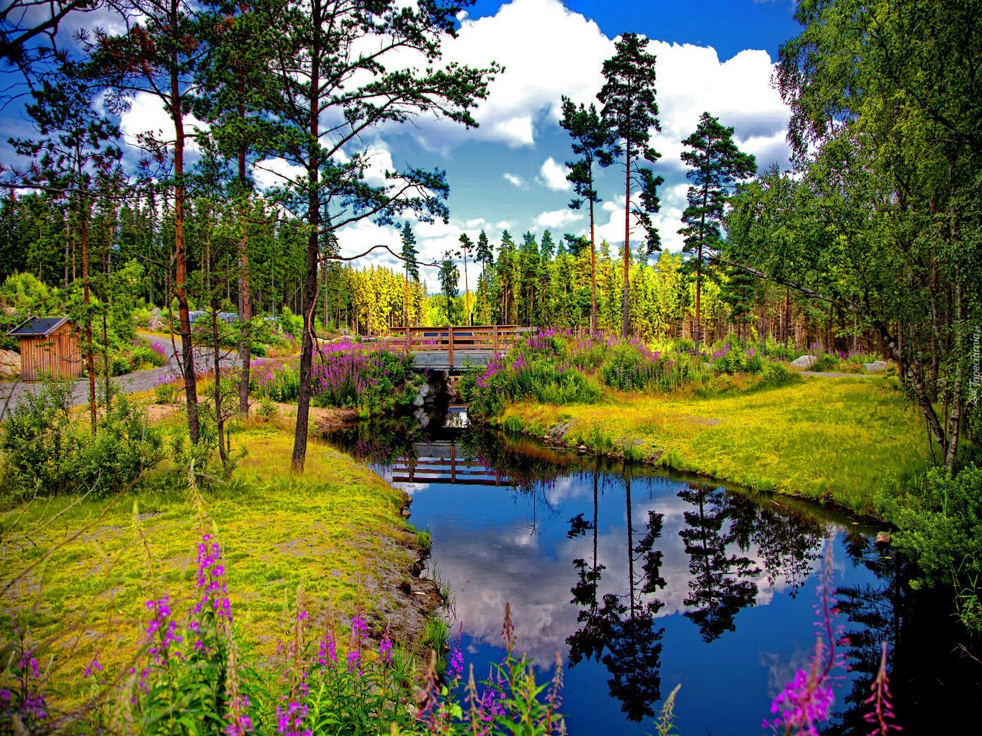 Edytor tapety: Park, Mostek, Rzeczka
