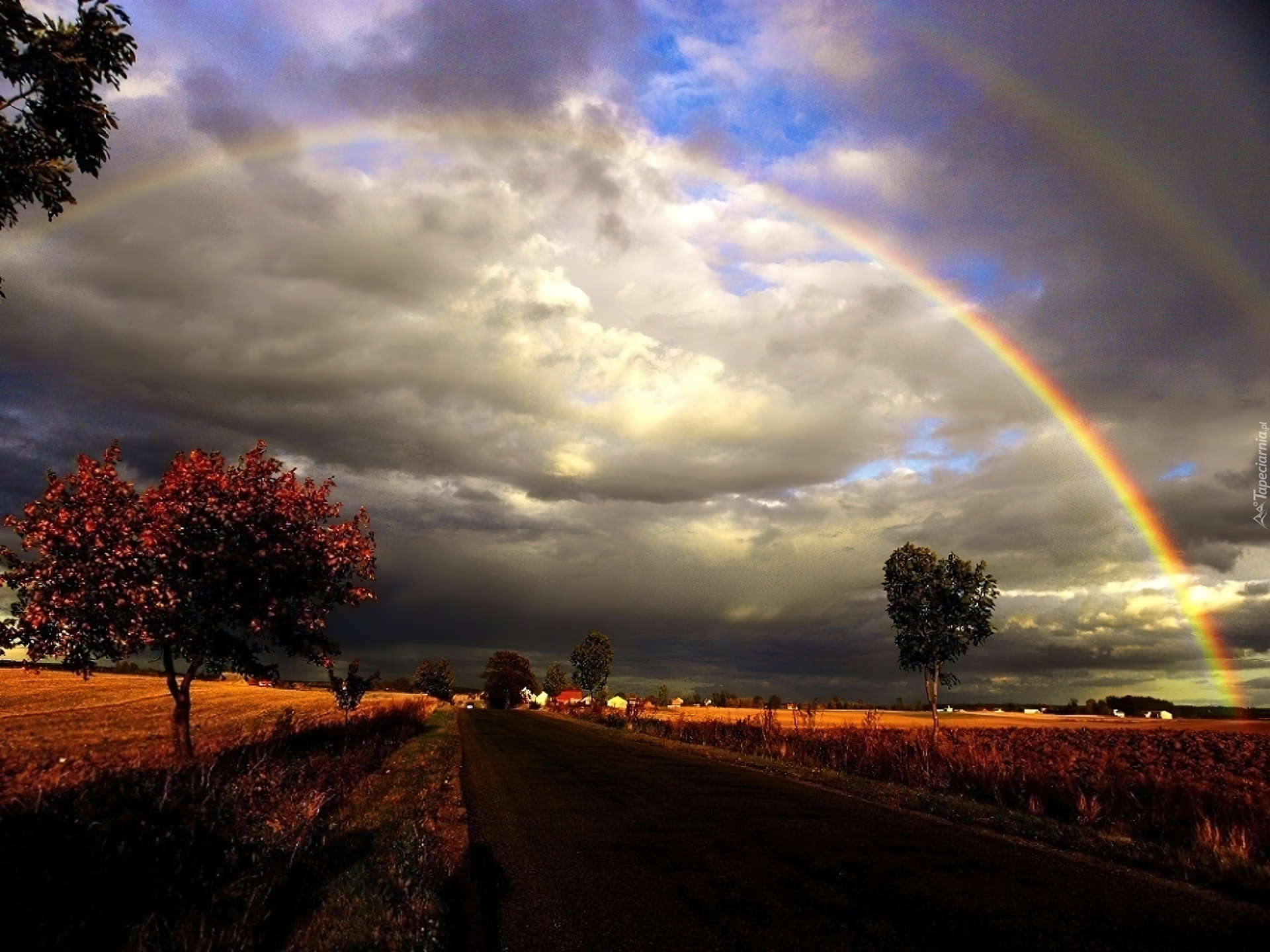 Edytor tapety: Tęcza, Chmury, Droga