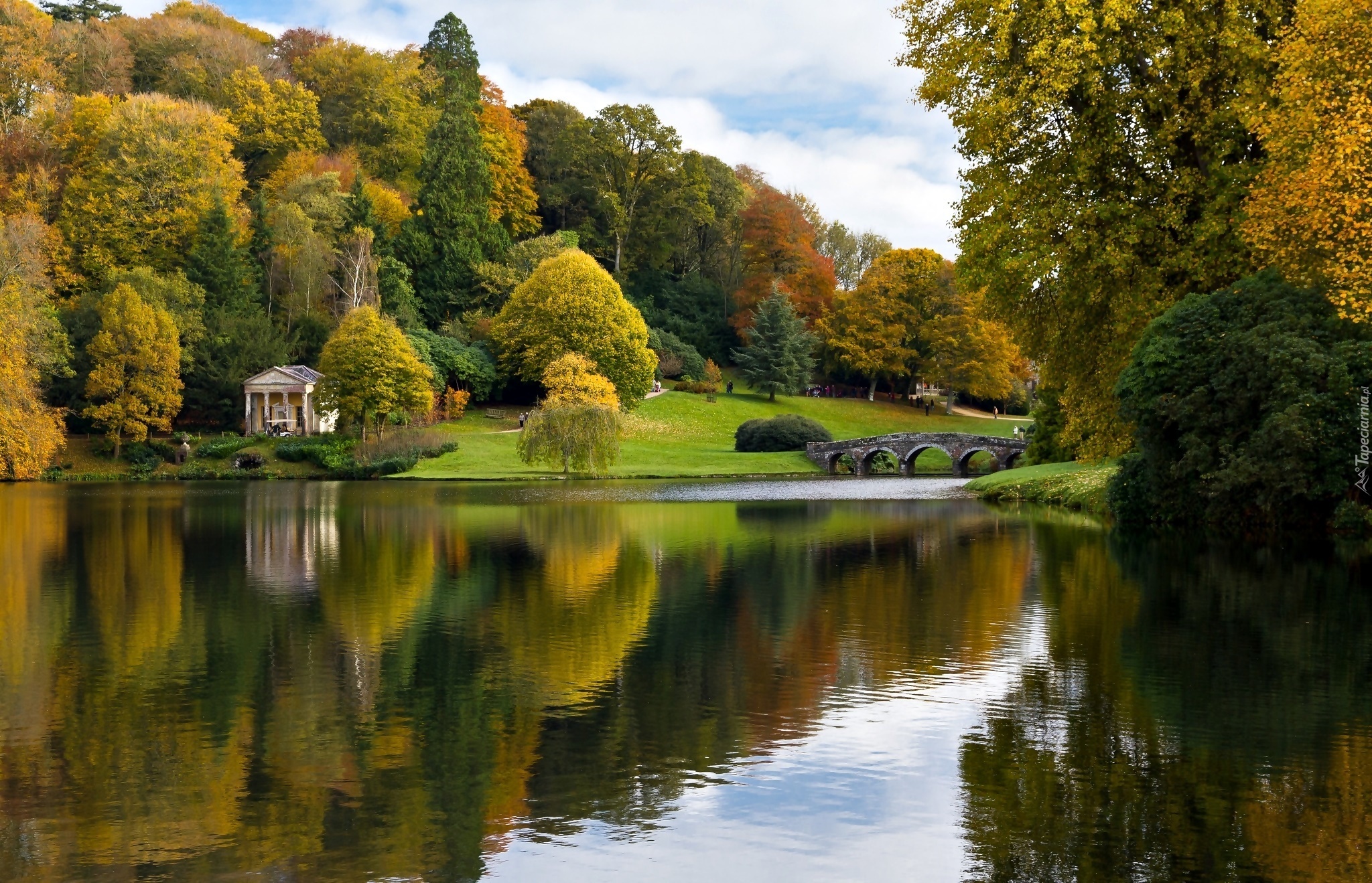 Edytor tapety: Jesień, Jezioro, Mostek, Drzewa