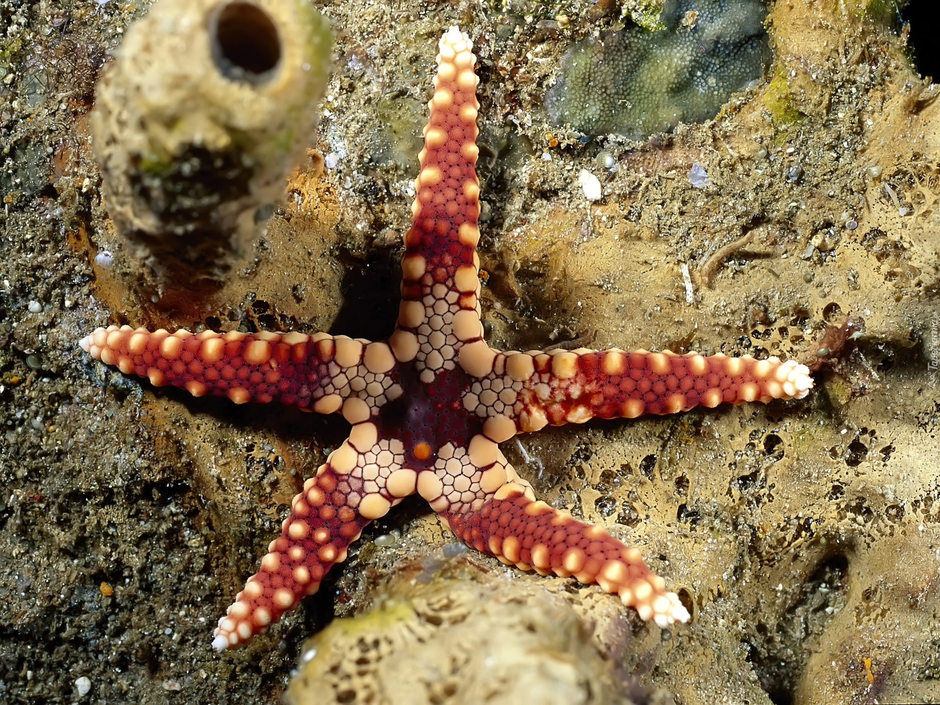 Edytor tapety: Czerwono, Biała, Rozgwiazda, Na, Dnie