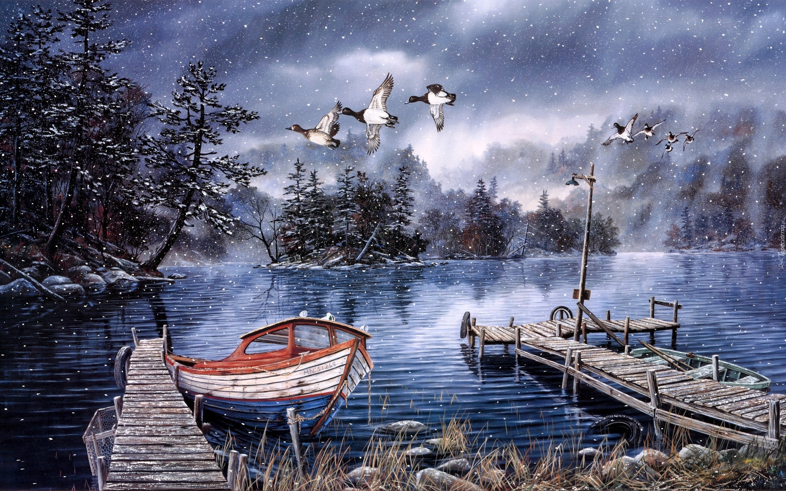 Edytor tapety: Jezioro, Pomost, Łódka, Obraz, Ken Zylla