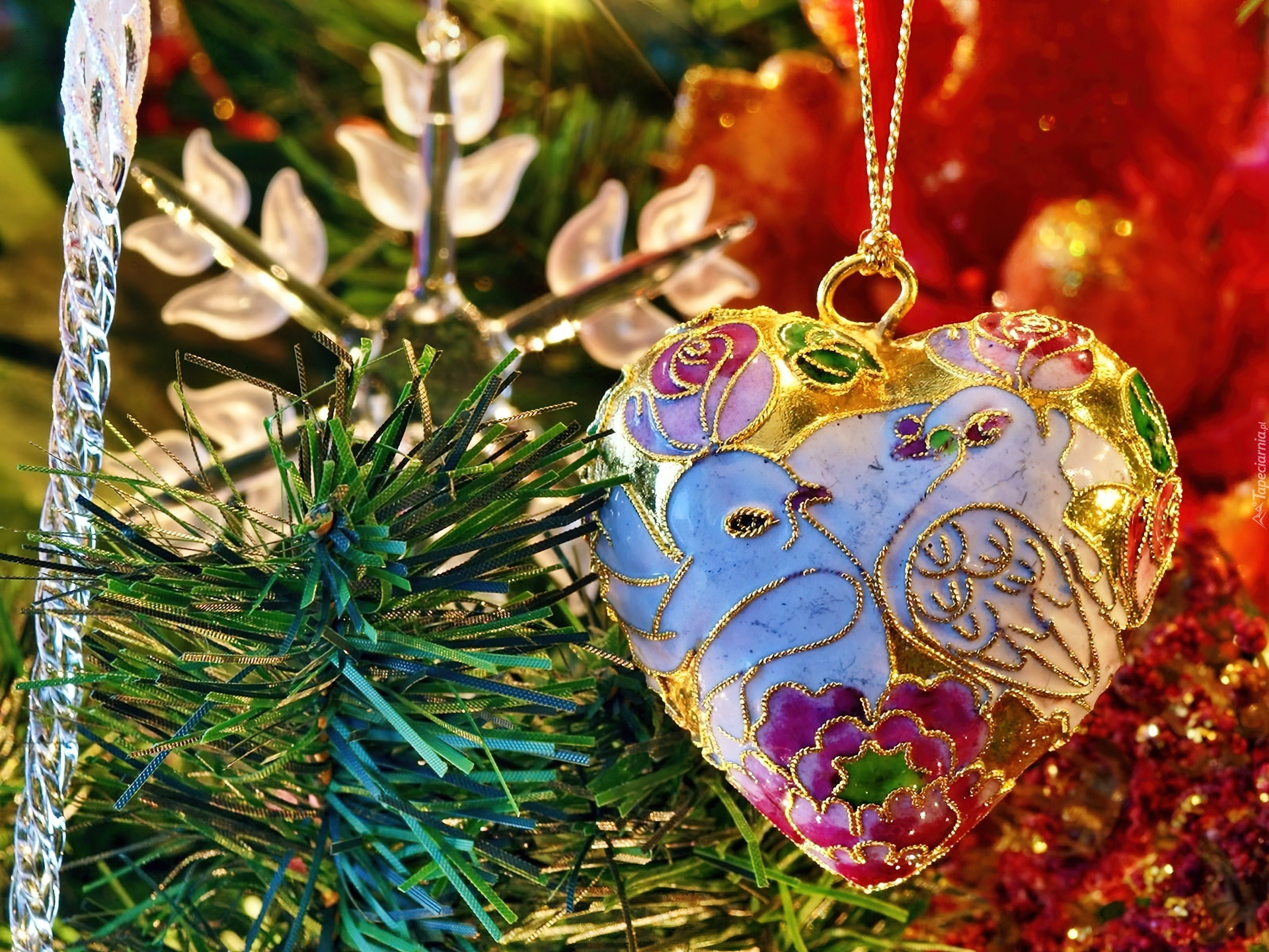 Edytor tapety: Bombka, Kolorowe, Serduszko