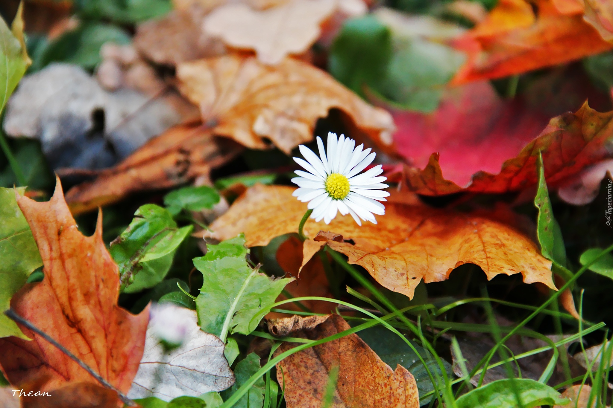Edytor tapety: Stokrotka, Suche, Liście