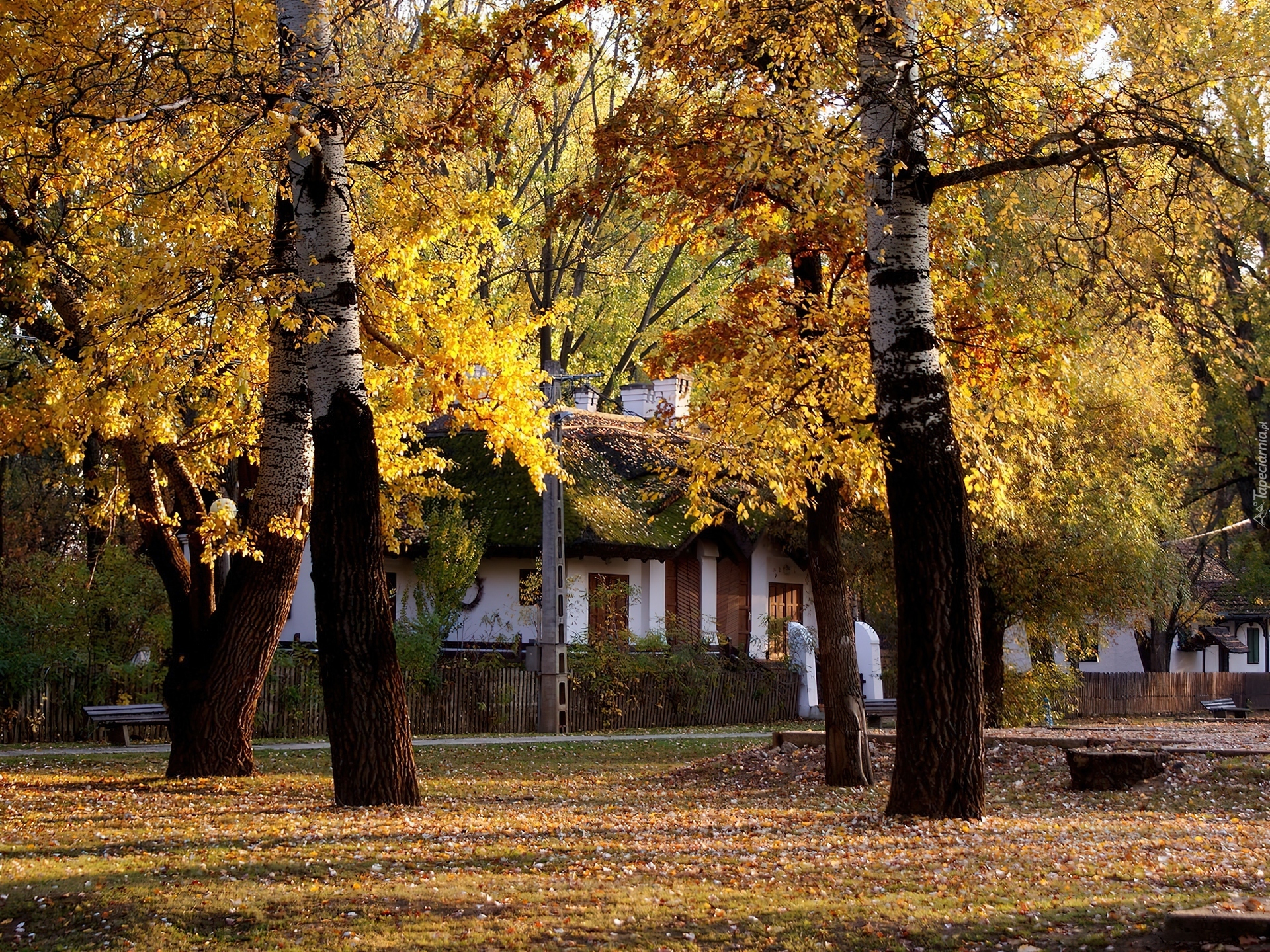 Edytor tapety: Park, Alejka, Ławki, Jesień