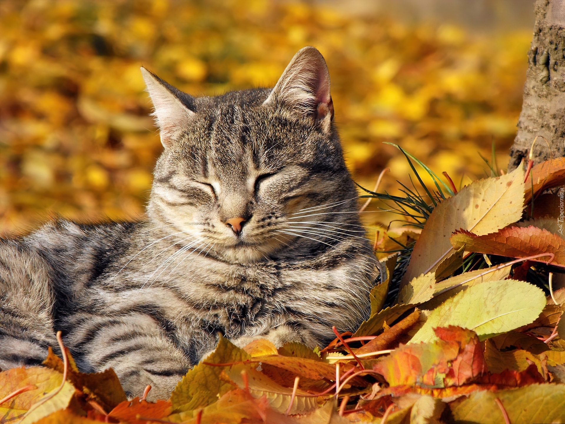 Edytor tapety: Kot, Liście, Jesień