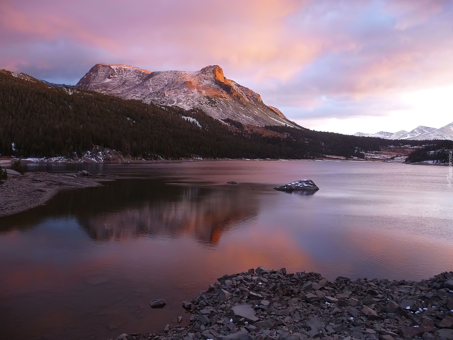 Edytor tapety: Jezioro, Kamyczki, Góry, Tioga