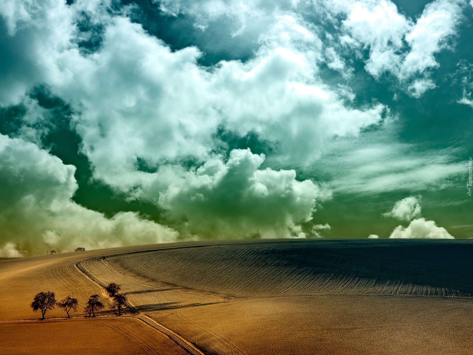 Edytor tapety: Pole, Chmury, Horyzont