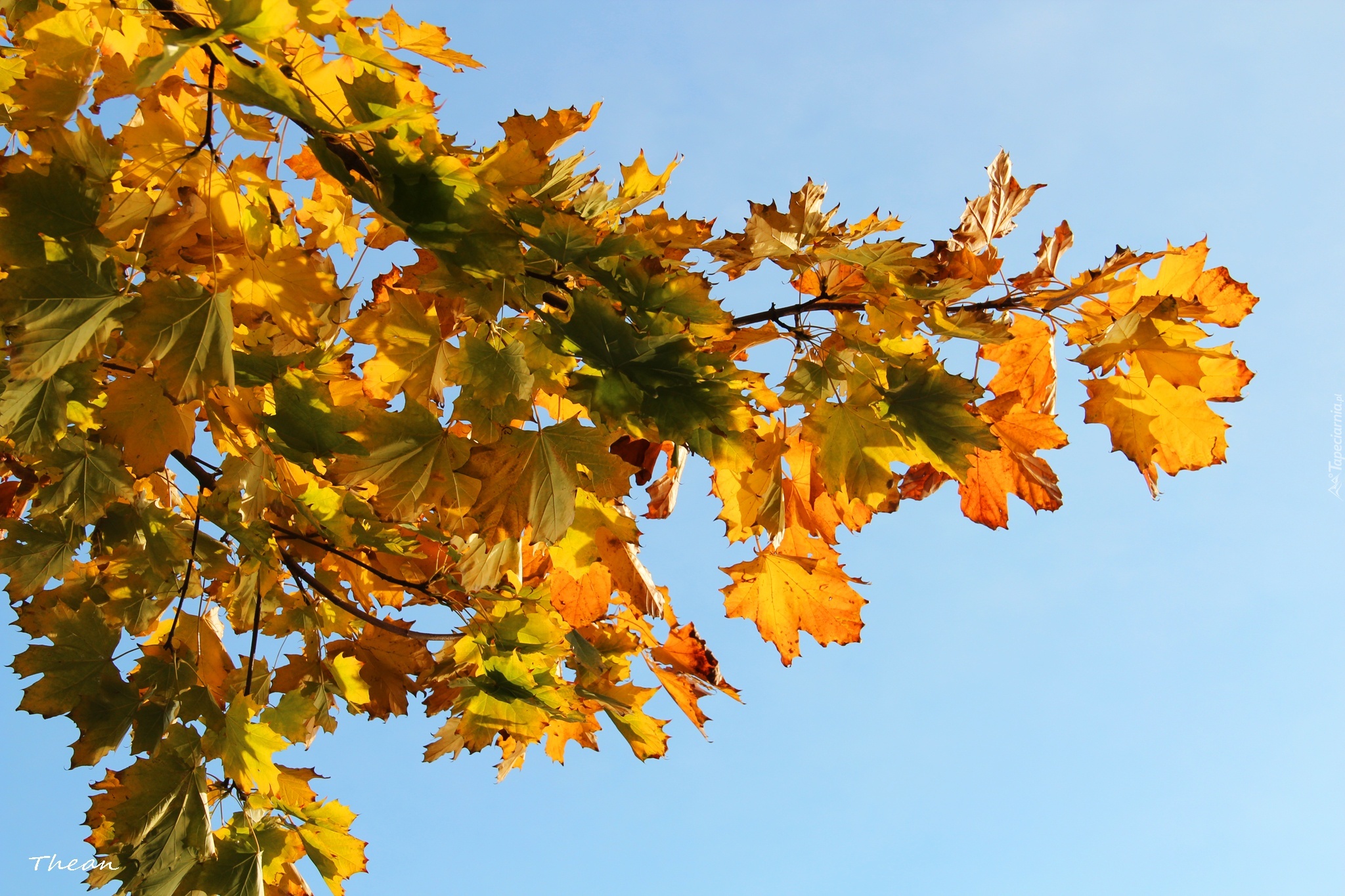 Edytor tapety: Żółte, Jesienne, Liście, Błękitne, Niebo