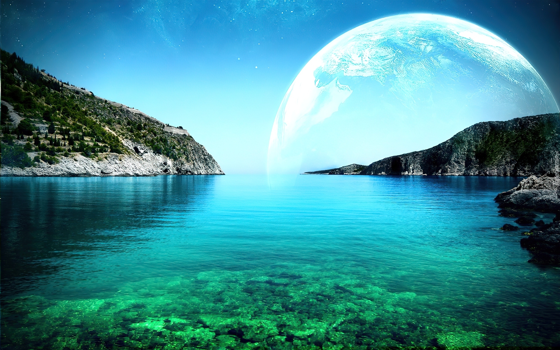 Edytor tapety: Wyspa, Ocean, Skały, Gwiazdy, Natura