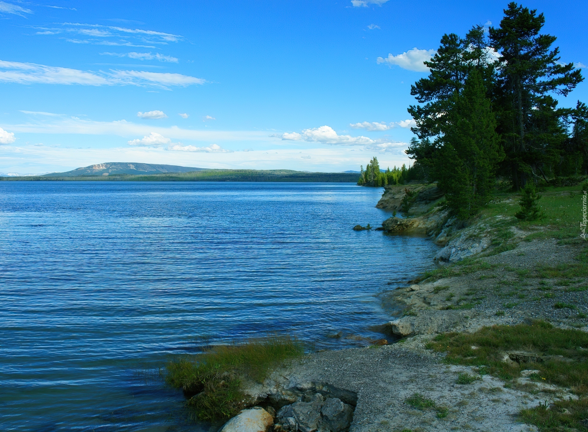 Edytor tapety: Piękne, Jezioro, Świerki, Niebo